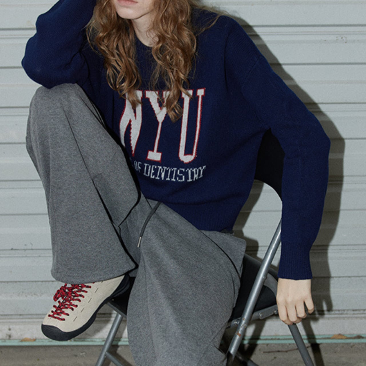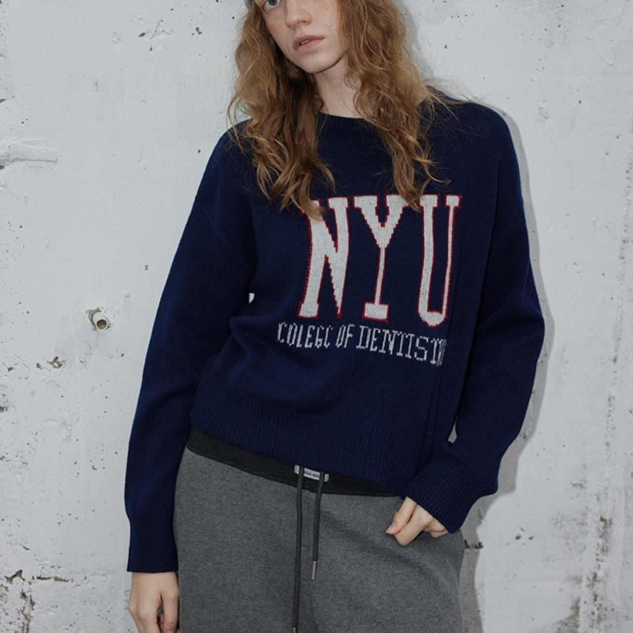 カレッジムード漂うニットプルオーバー。