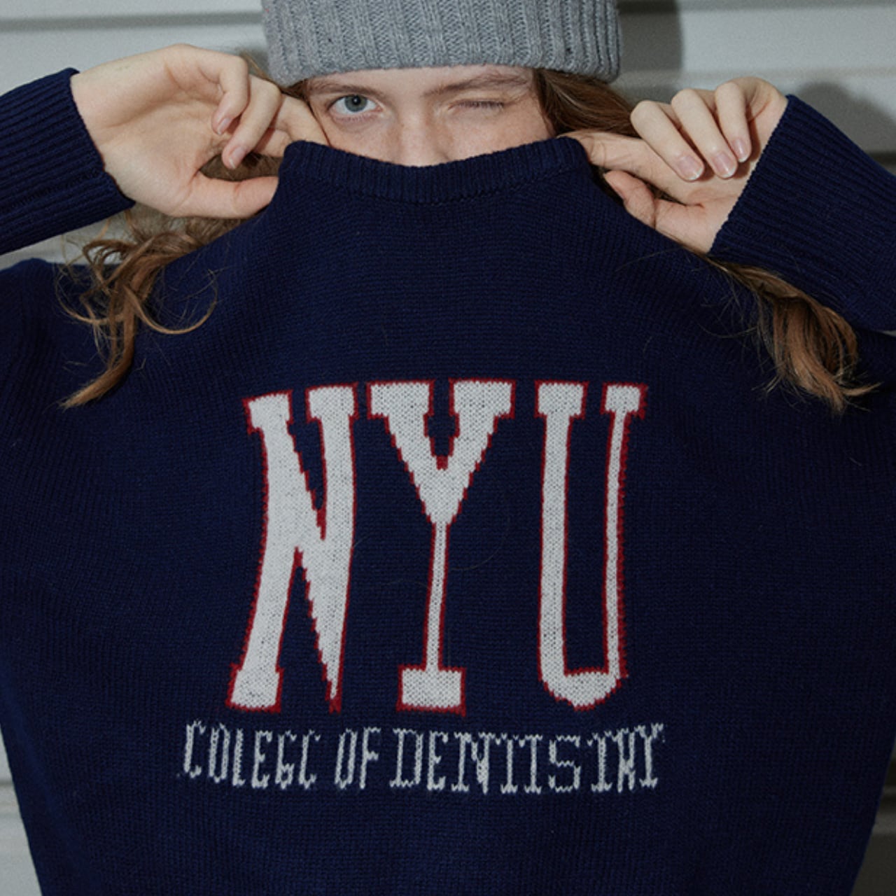 フロントに施された「NYU」ロゴが目を引く、
