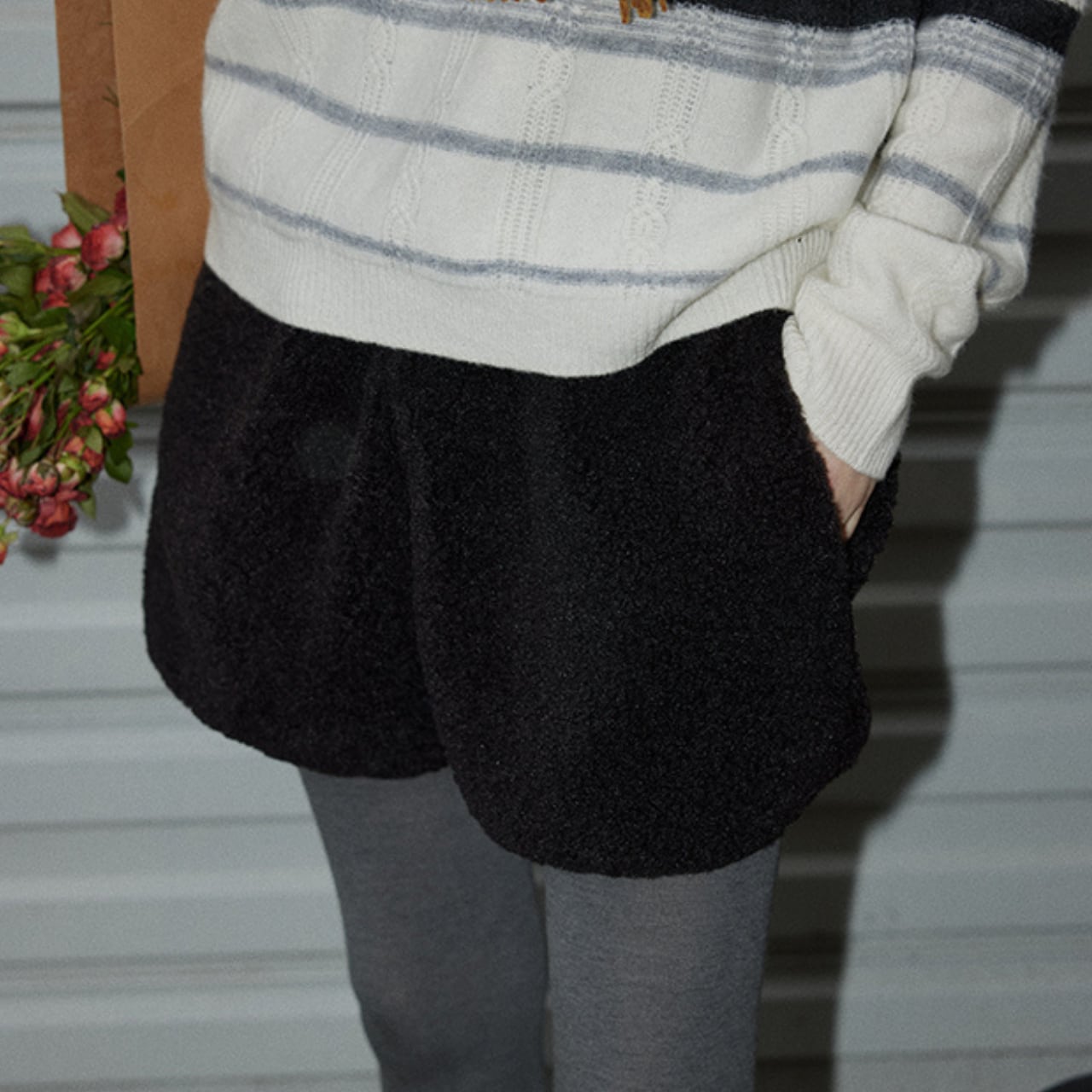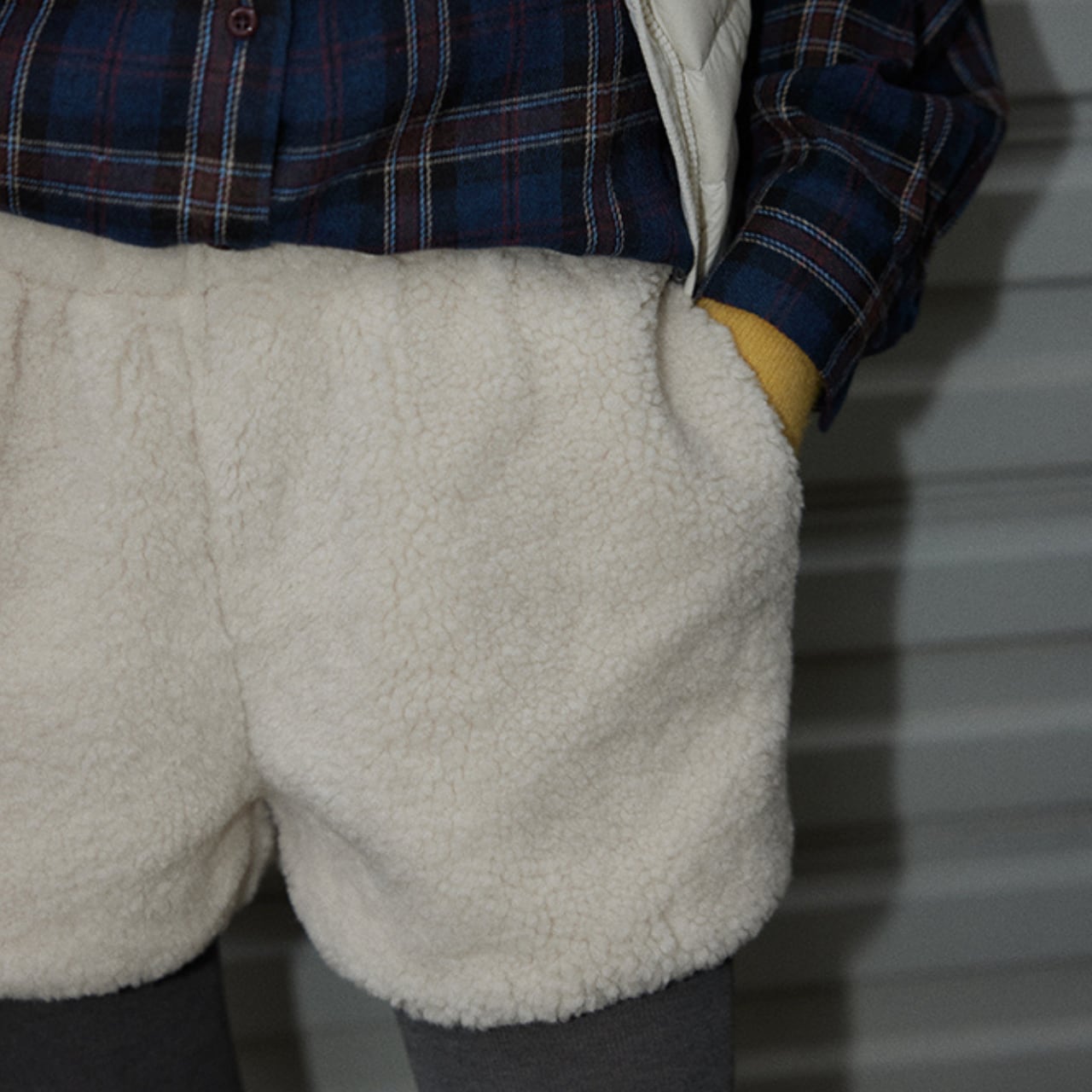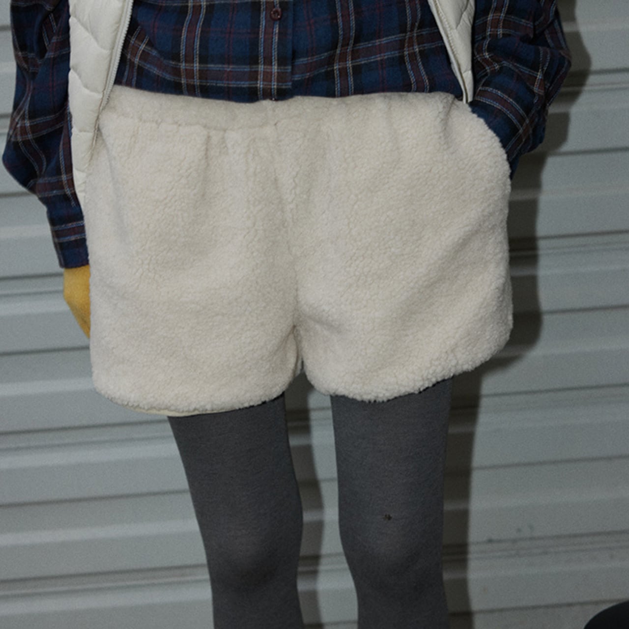 ふんわりとしたボア素材が特徴の、ショートパンツ。