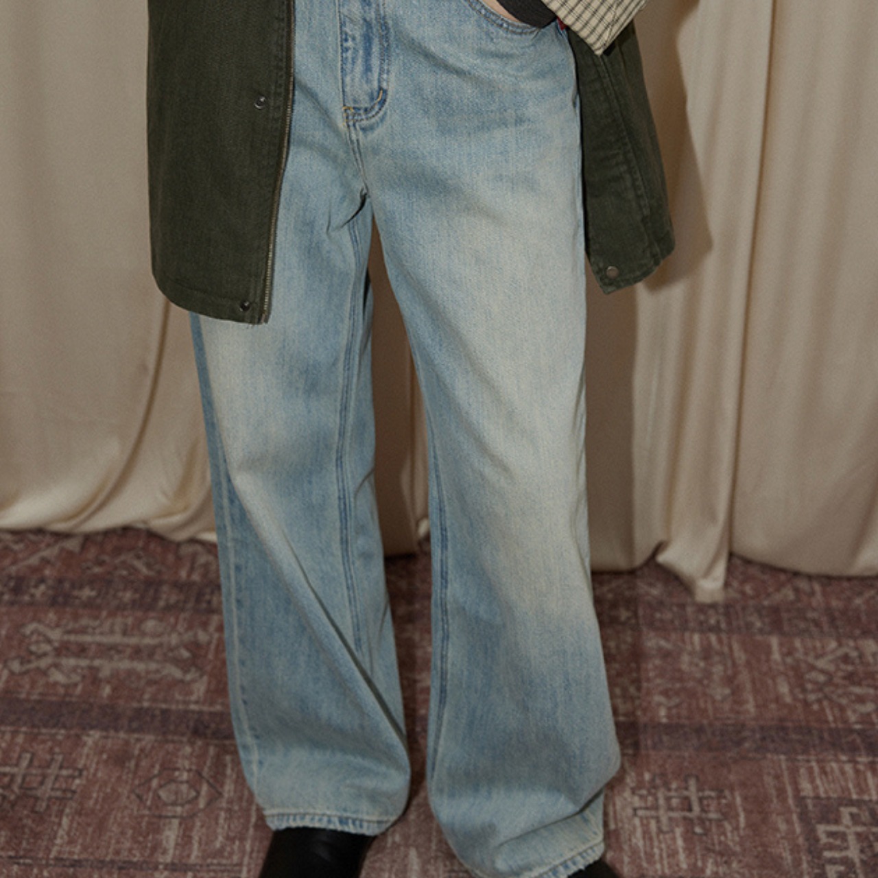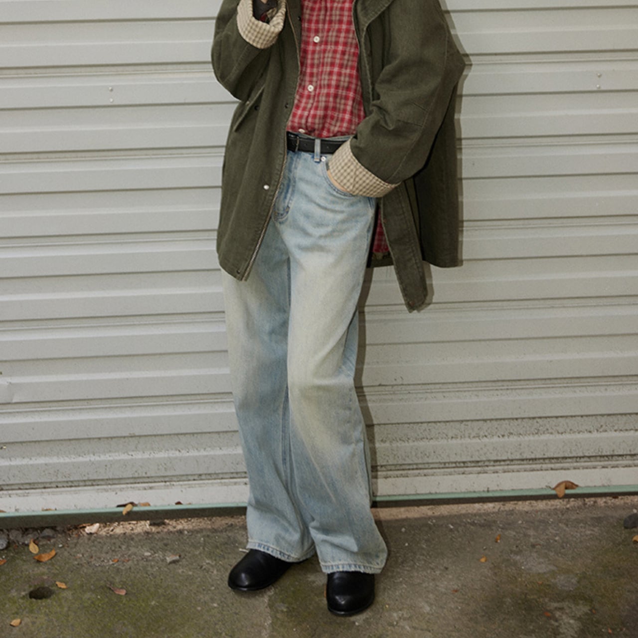 程よく色落ちした風合いが魅力の、ヴィンテージライクなワイドデニム。