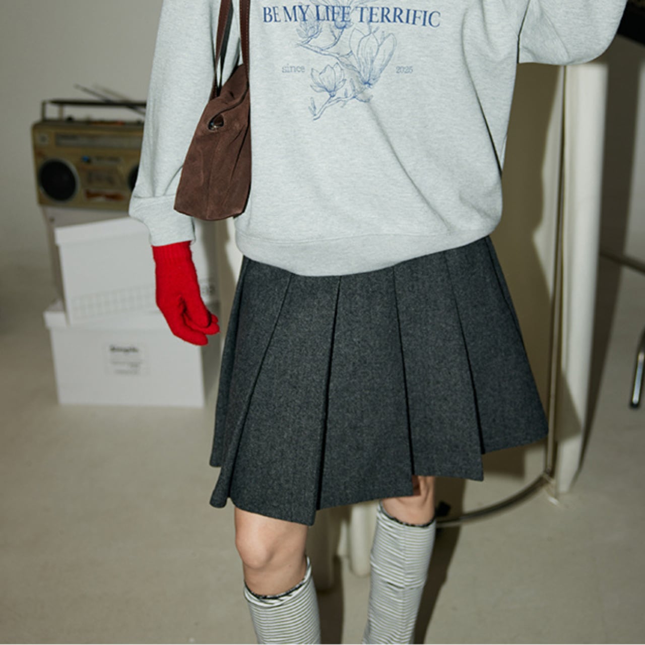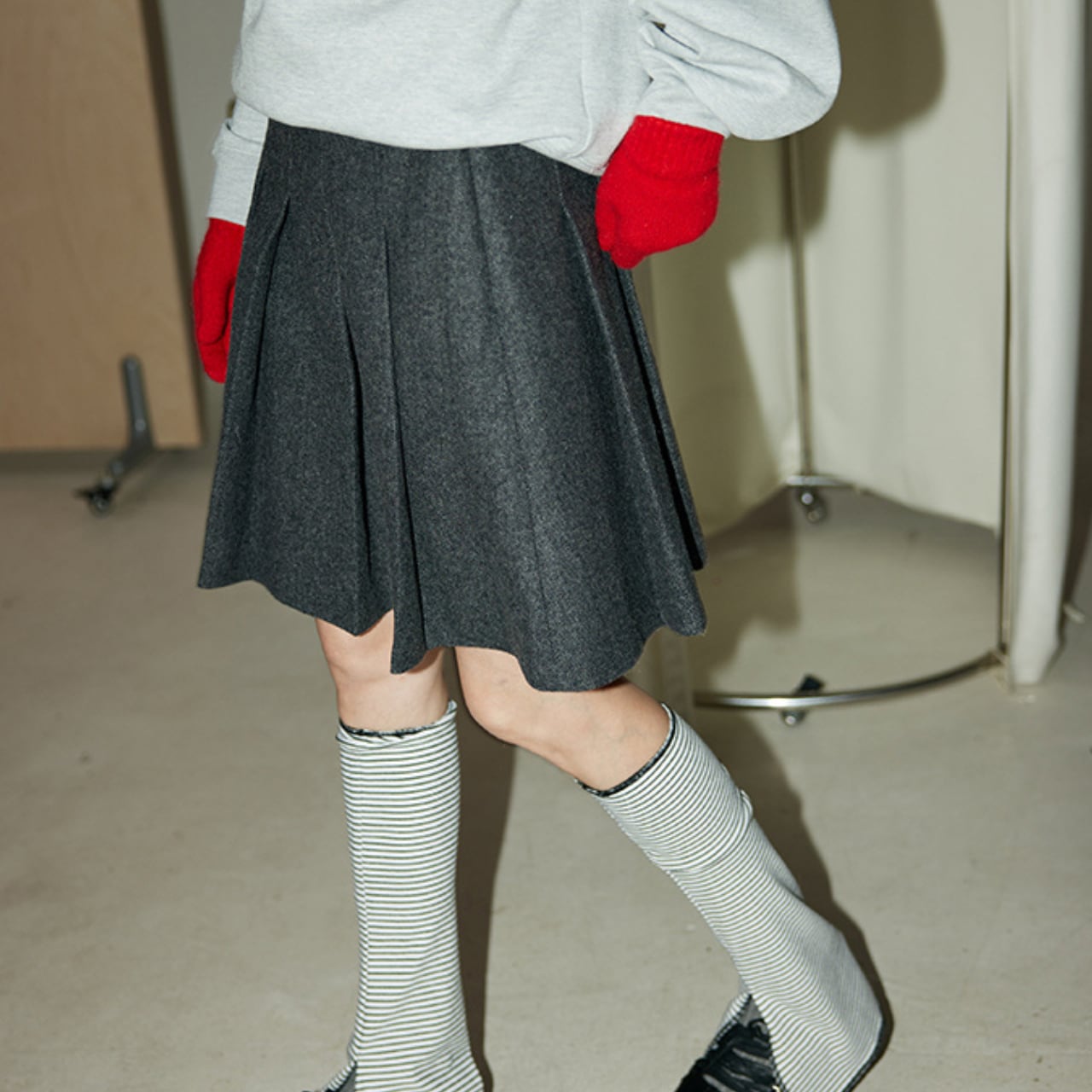 ソックスやタイツとのレイヤードも楽しめます。