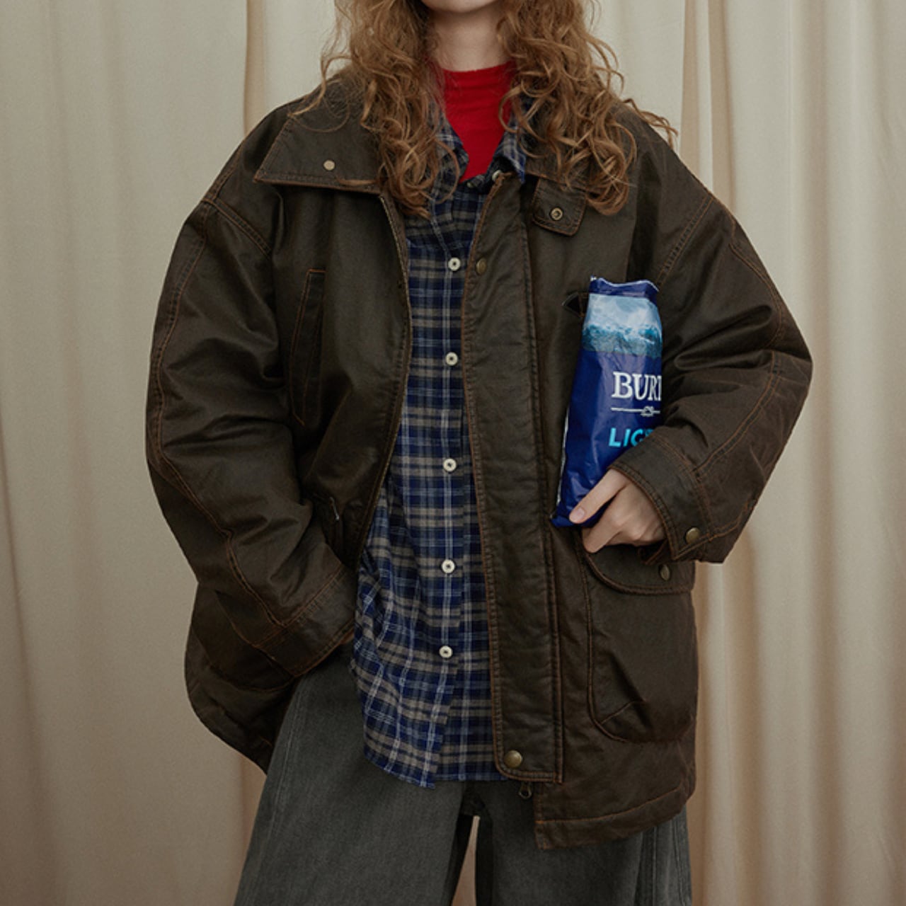 オーバーすぎないシルエットで、ラフに羽織るだけでこなれたスタイリングが完成します。