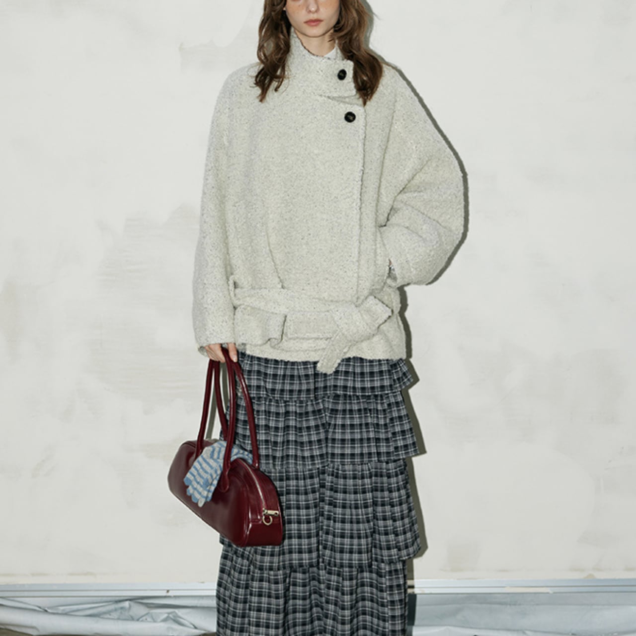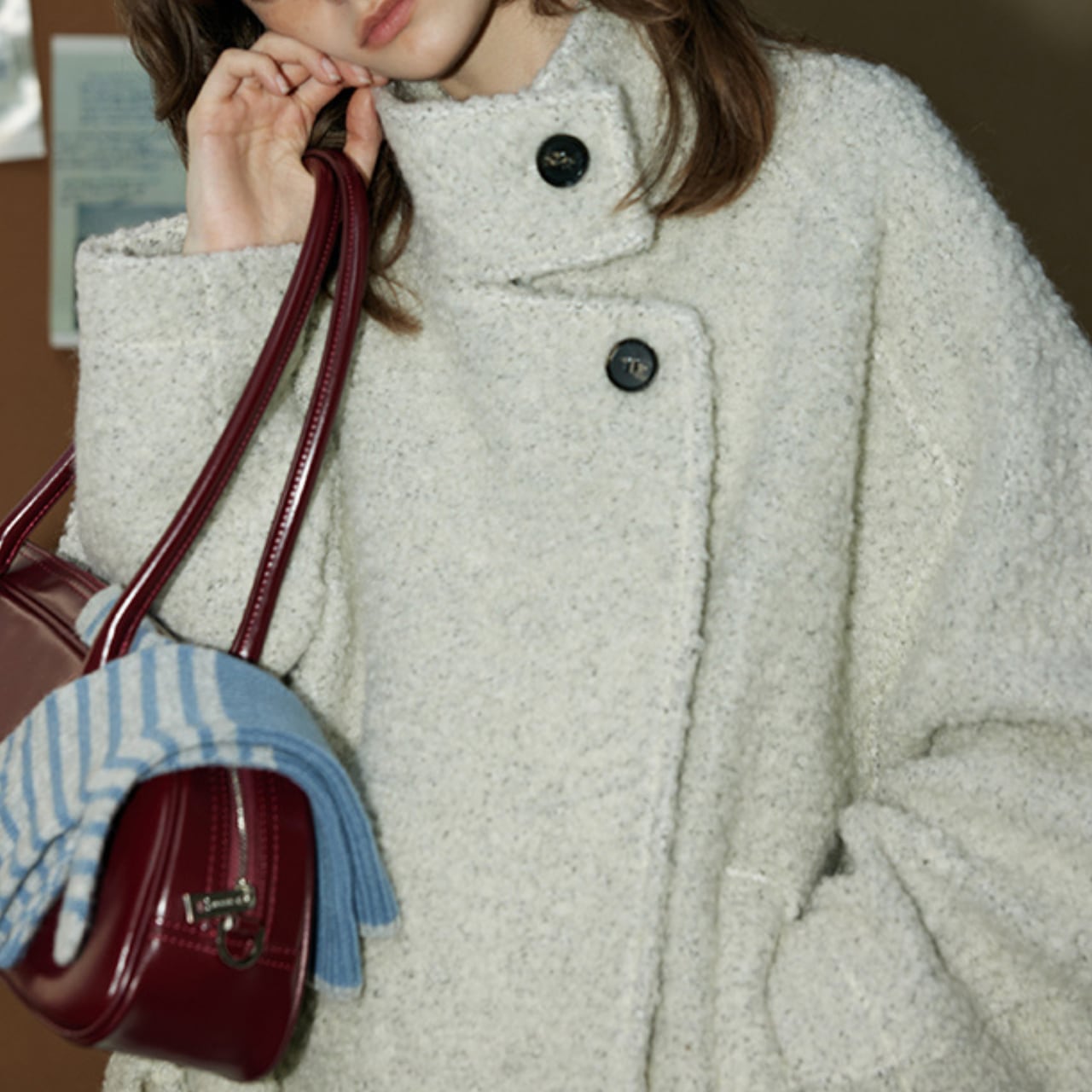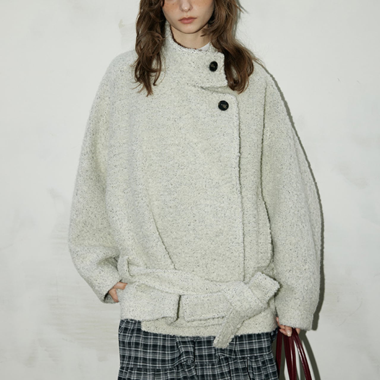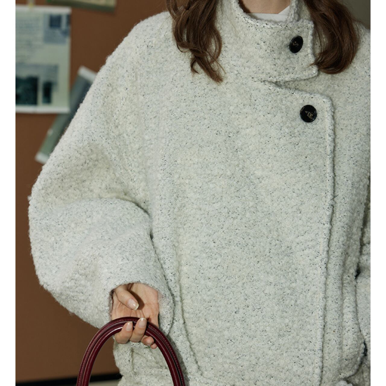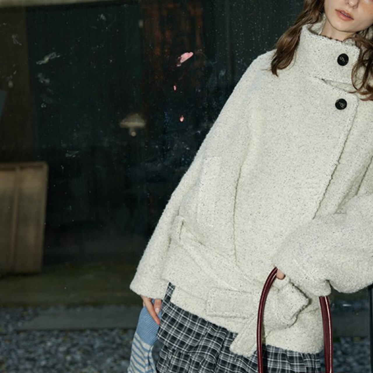 表情のあるブークレ調の素材が印象的な、軽やかなアウター。