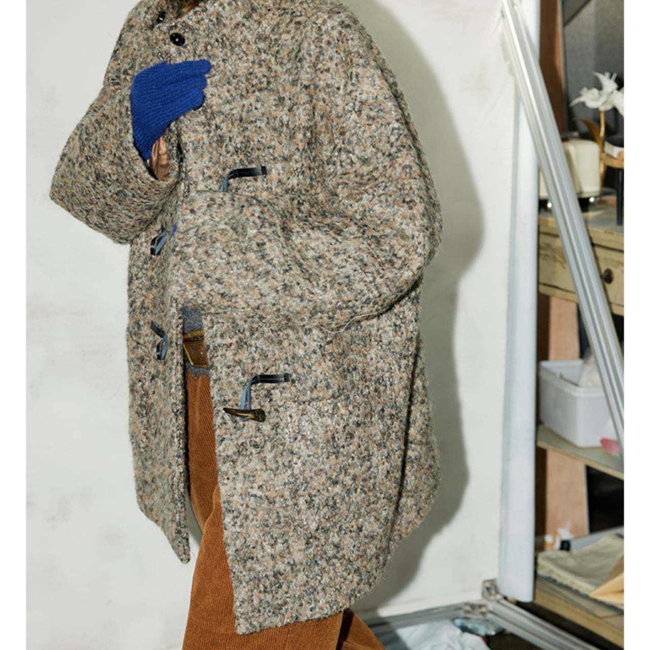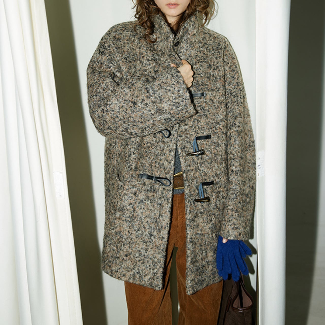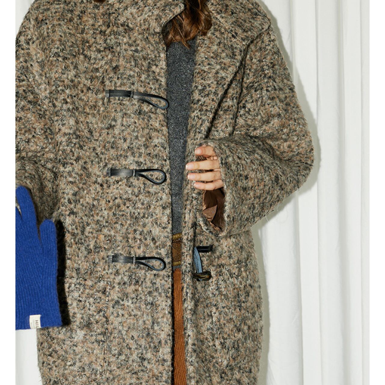 クラシックなトグルデザインが印象的な、ムード漂うウールブレンドコート。