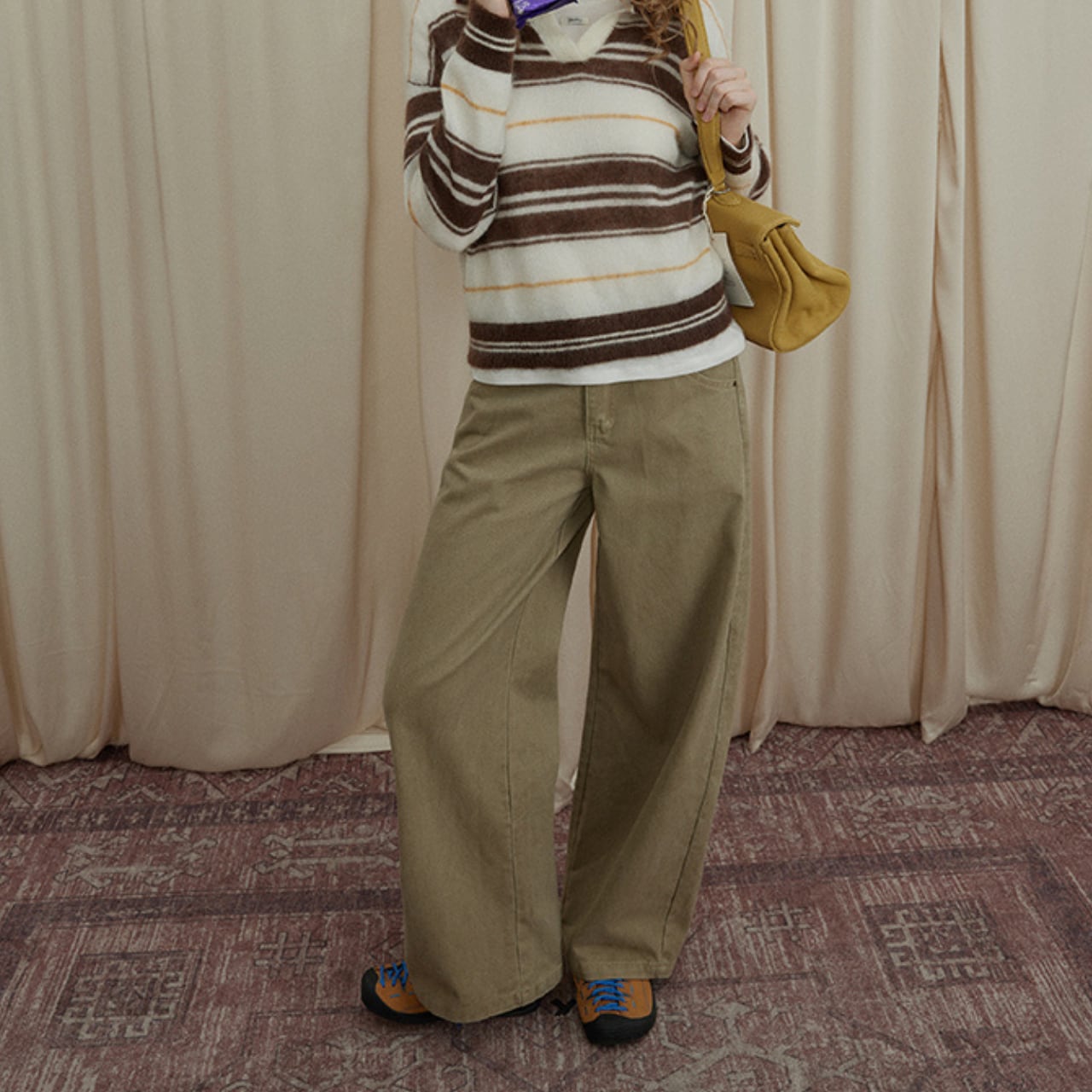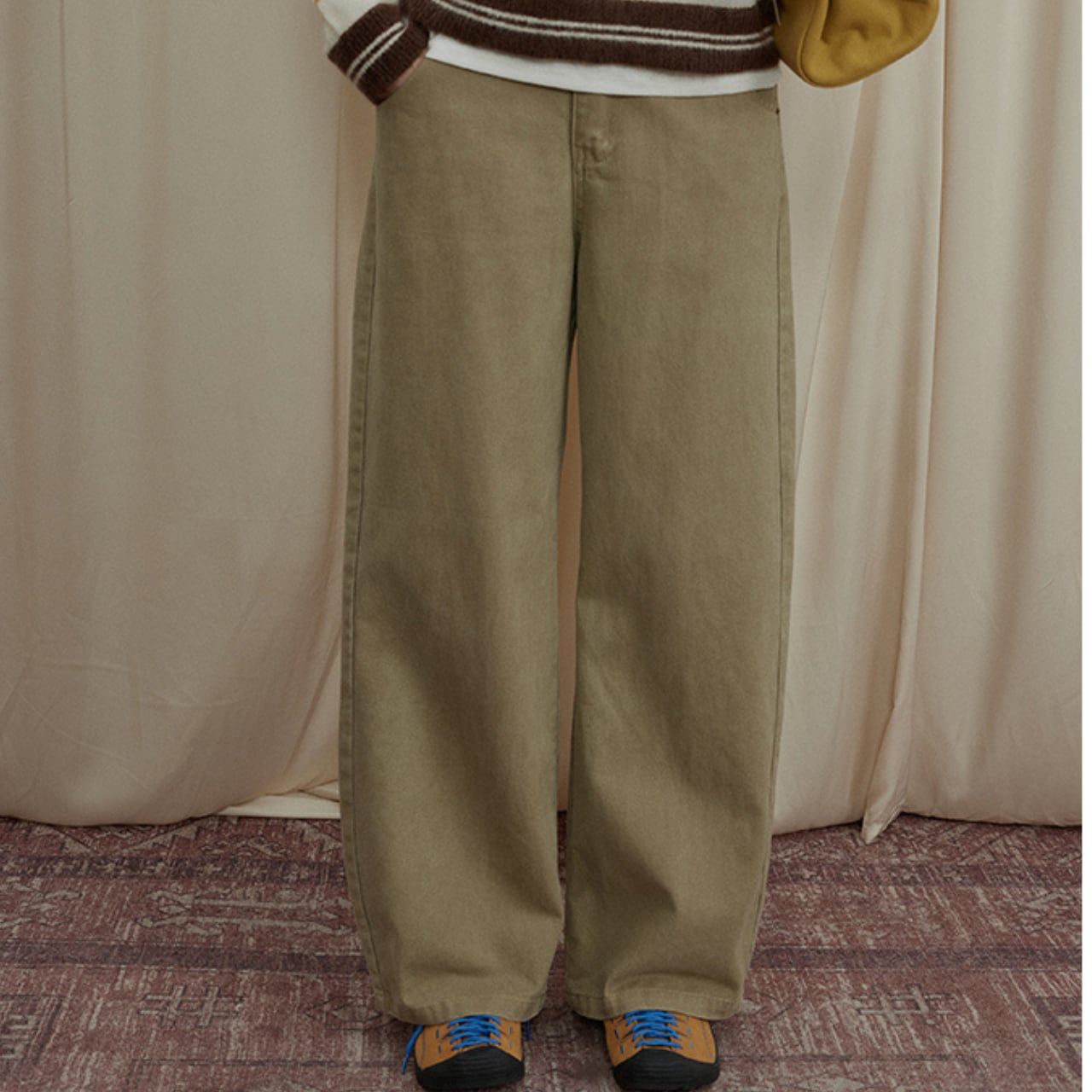 ニットやスウェット、シャツまで幅広く合わせやすく、カジュアルながらも落ち着いた印象に仕上がります。
