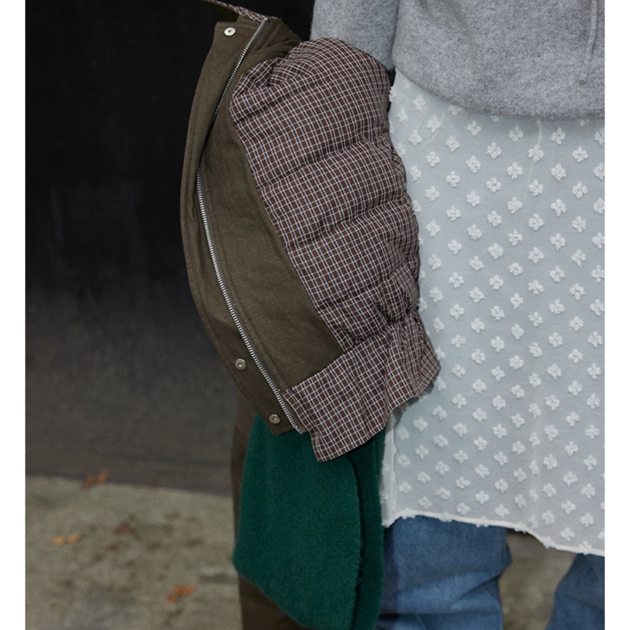 クラシックなチェック柄と、落ち着いた無地カラーを楽しめるリバーシブル仕様の中綿ジャケット。