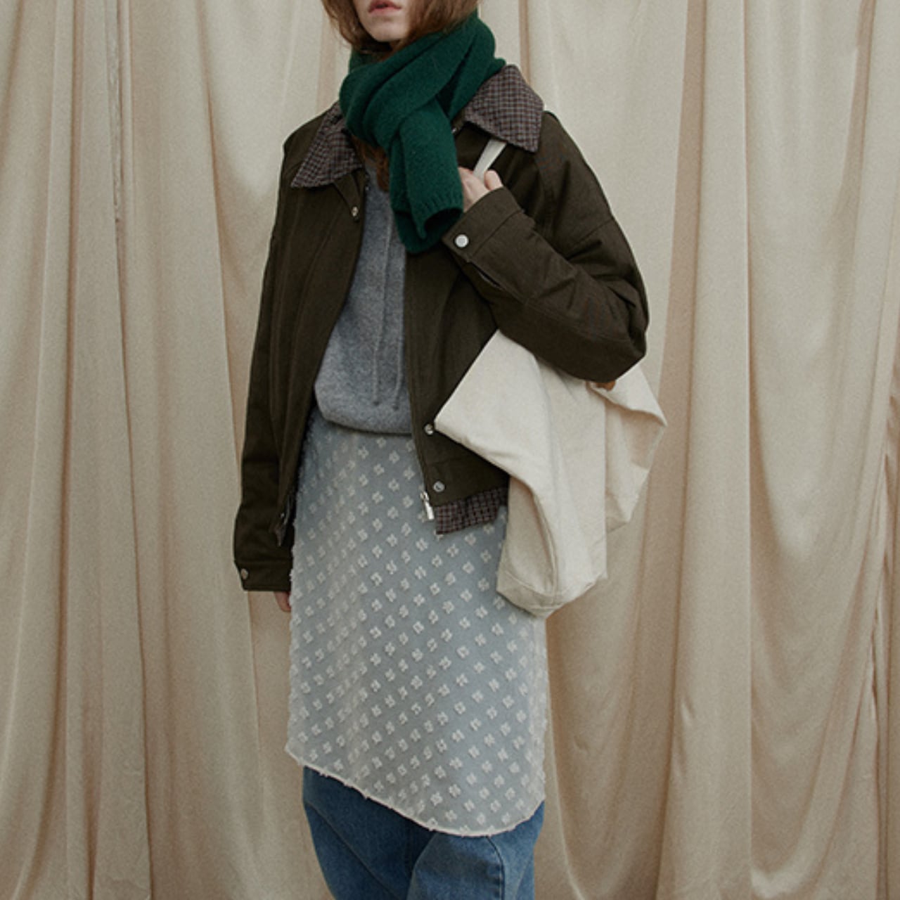 程よくボリュームのあるシルエットで、ヴィンテージライクなムードを残しつつ、デイリーに着やすいバランスに仕上げました。