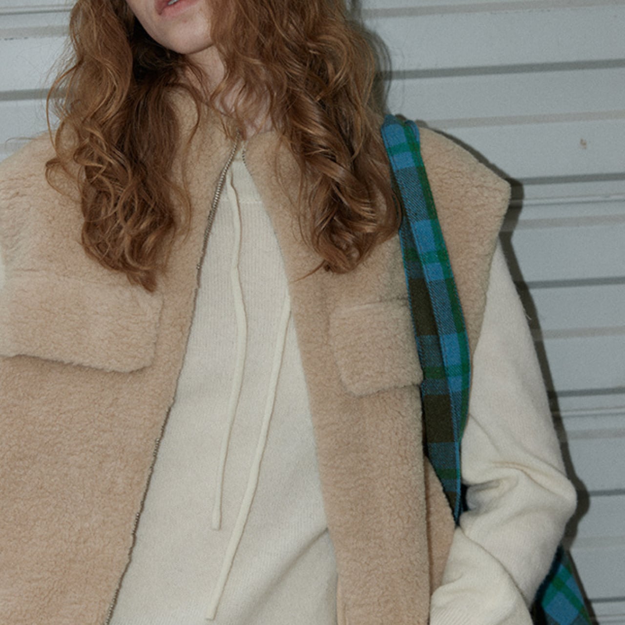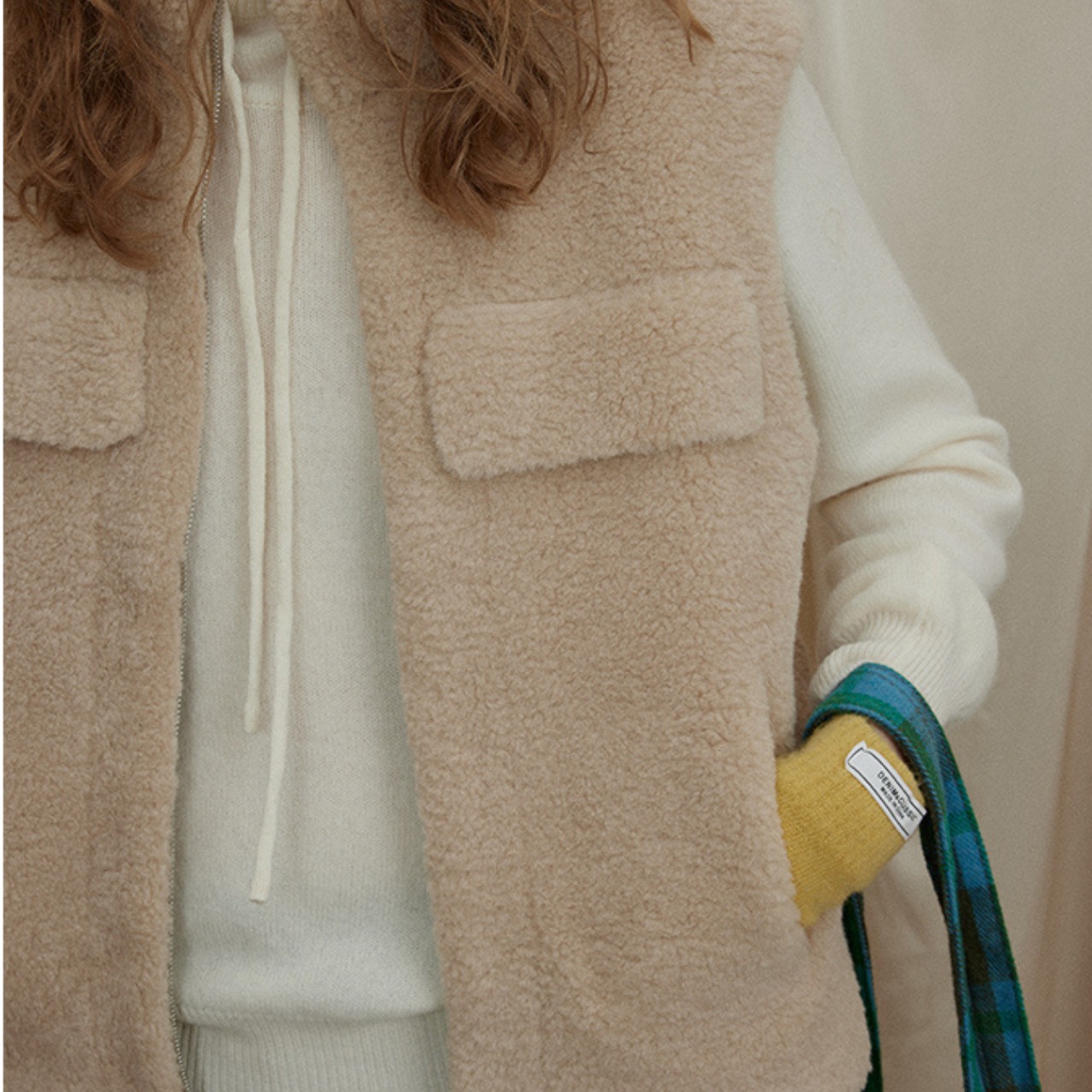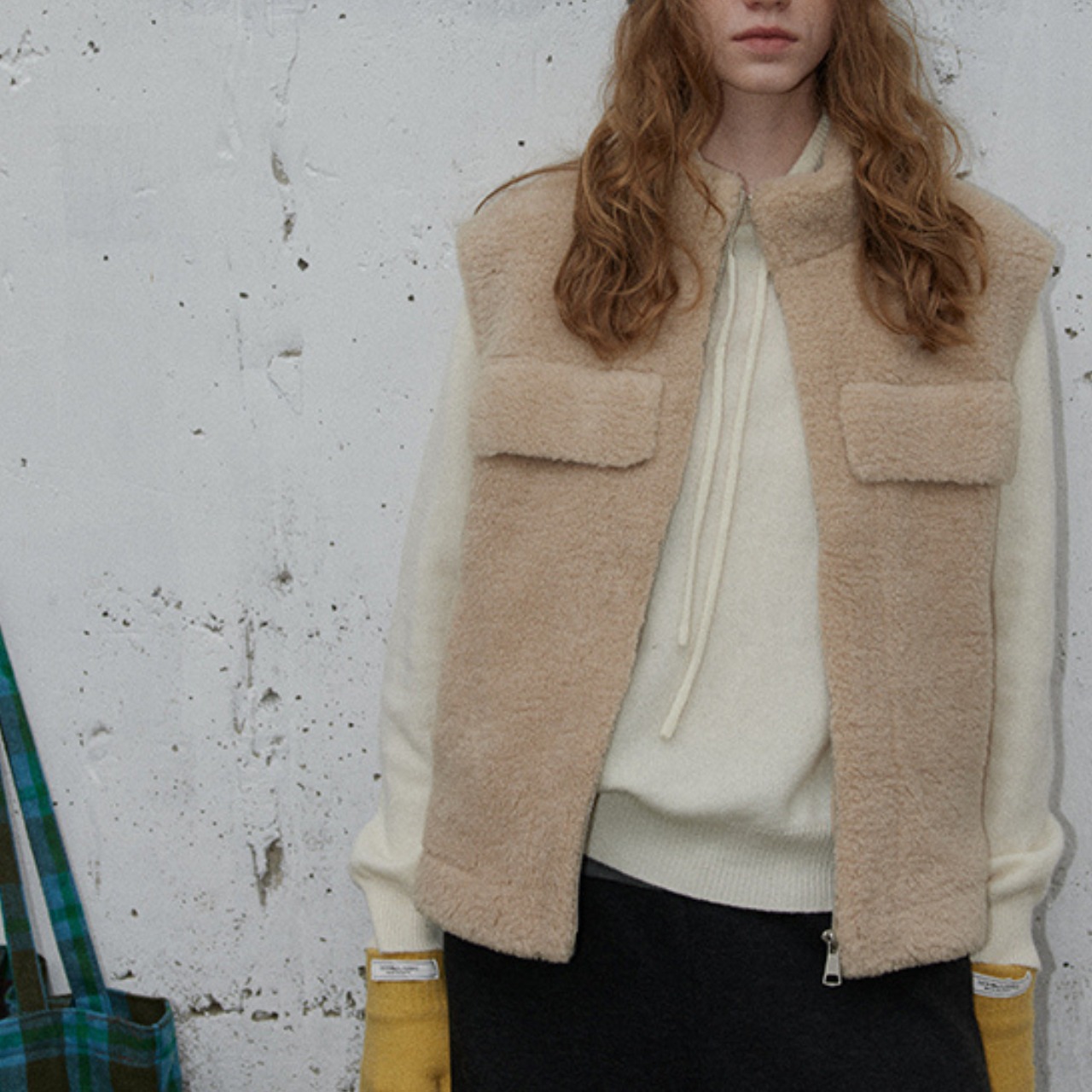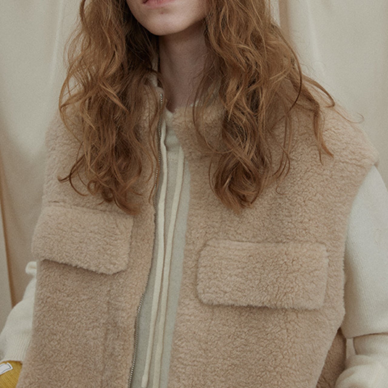ふんわりとしたファー素材が魅力の、やさしい表情のファーベスト。