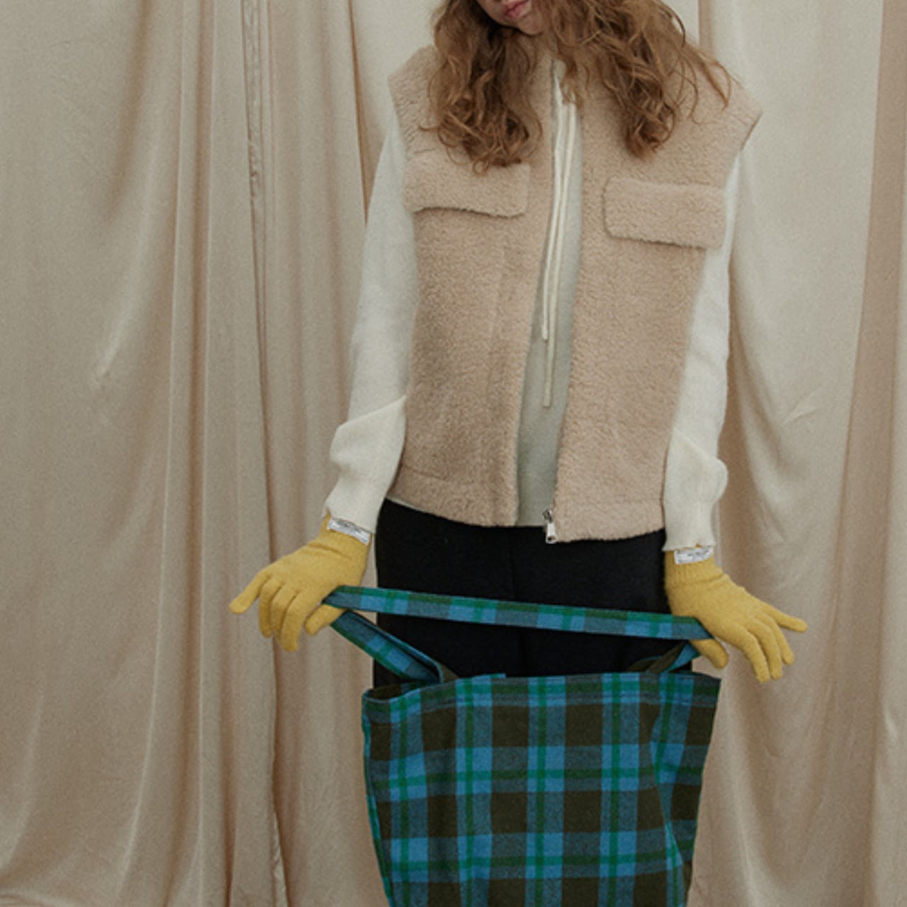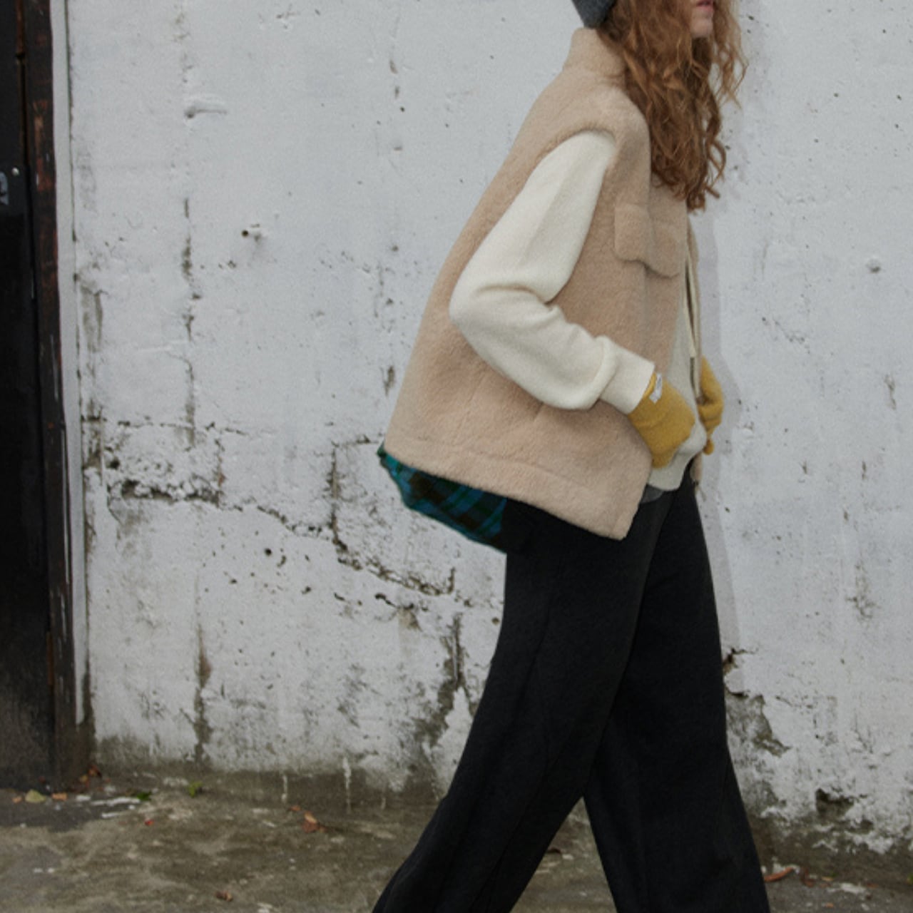 スウェットやニット、シャツの上から重ねるだけで、秋冬らしい温もりのあるスタイリングが完成します。
