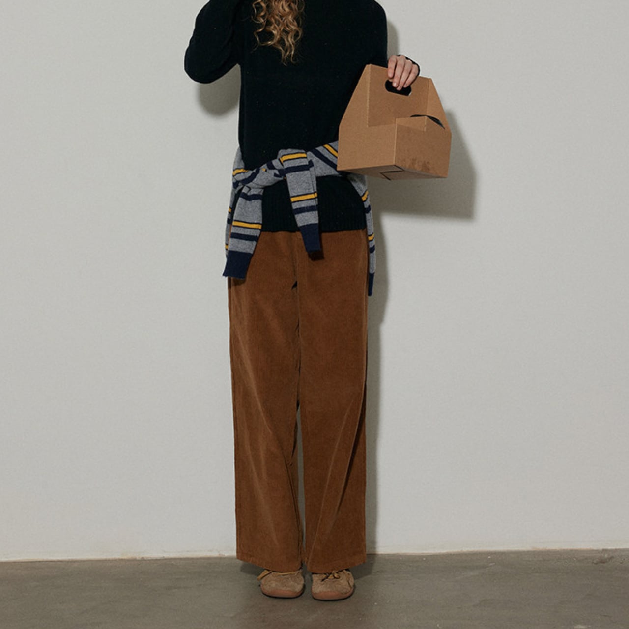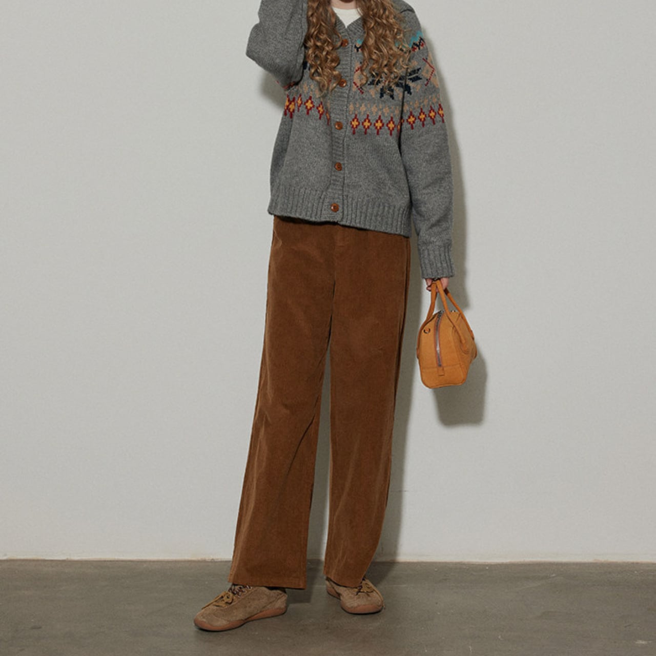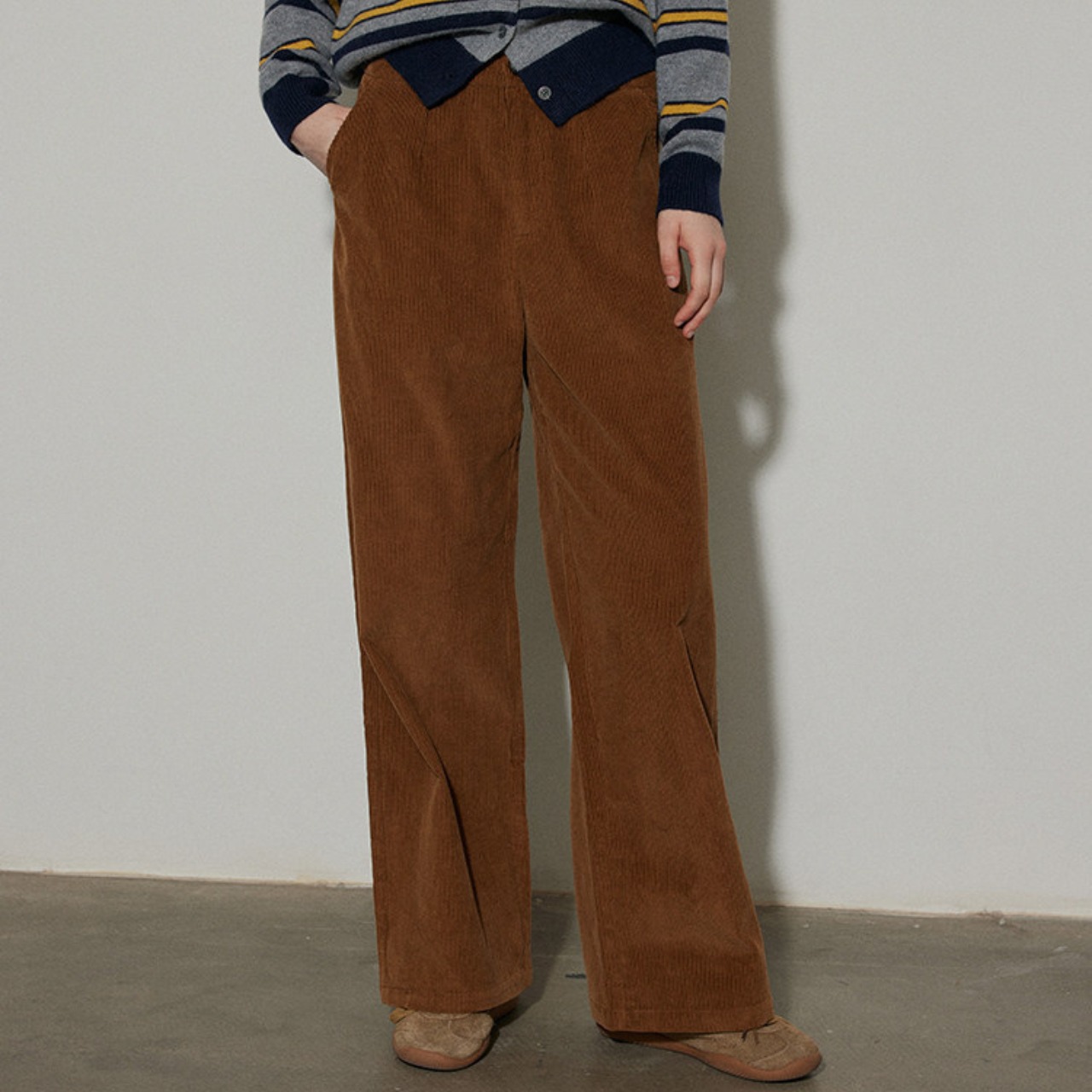 温かみのあるコーデュロイ素材を使用したワイドパンツ。