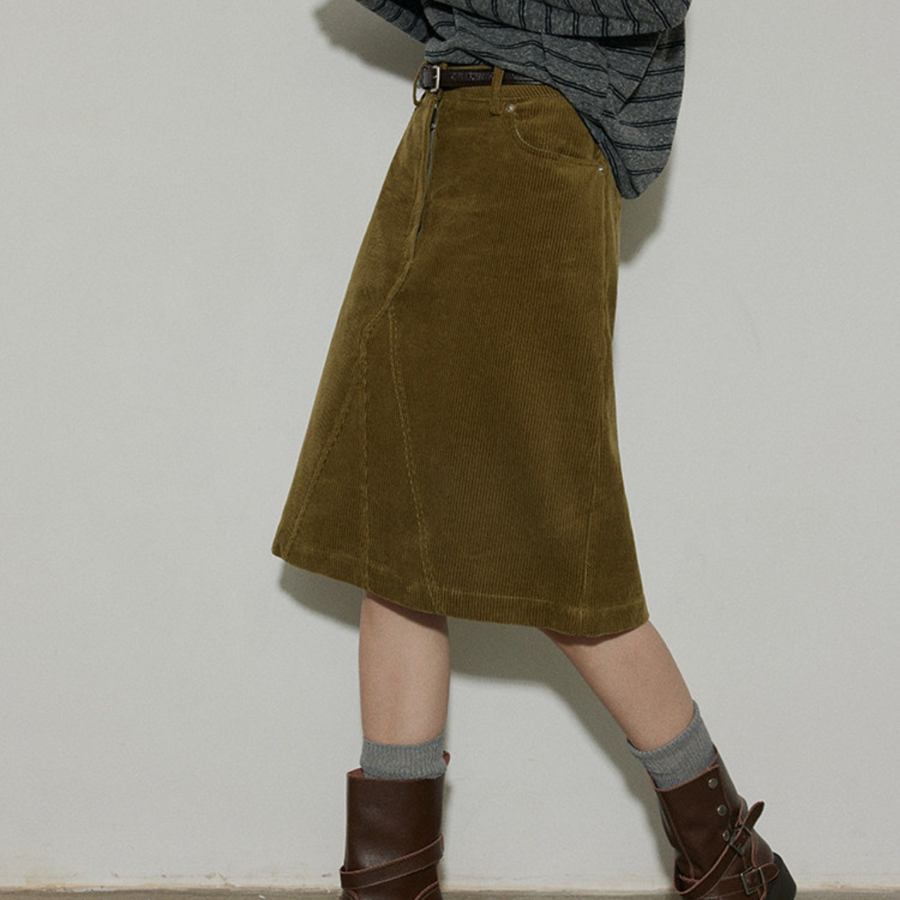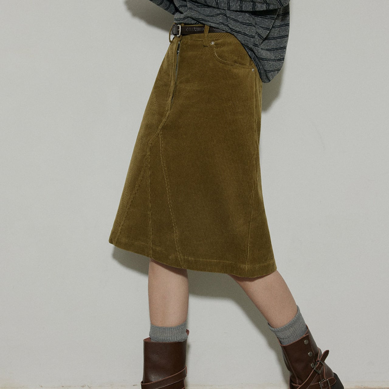 A-line midi corduroy skirt 00098