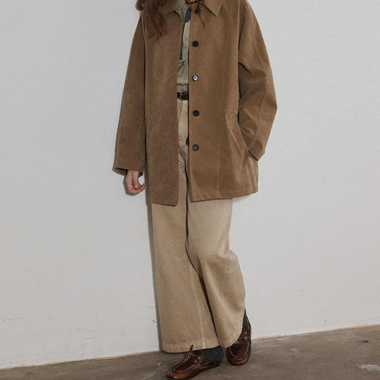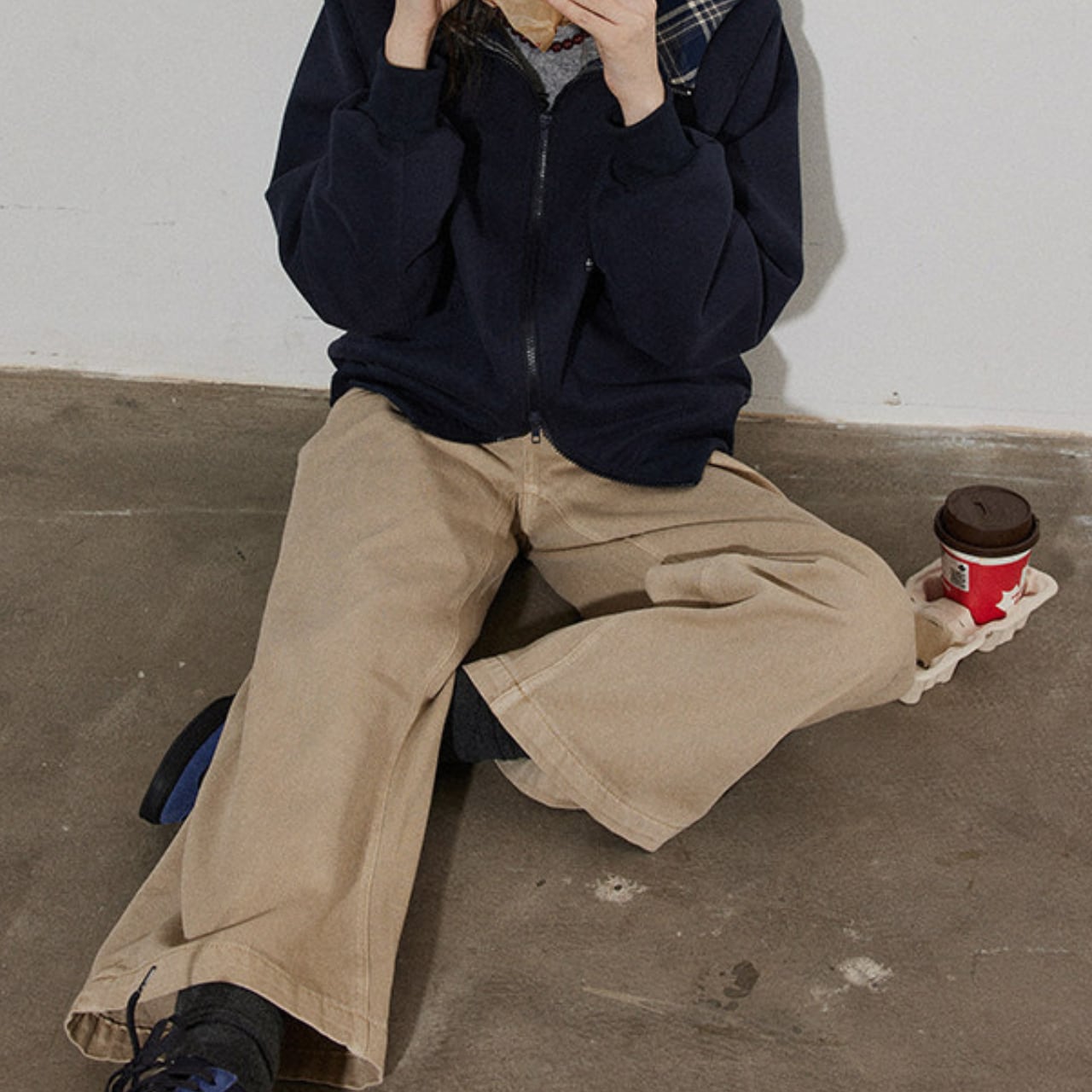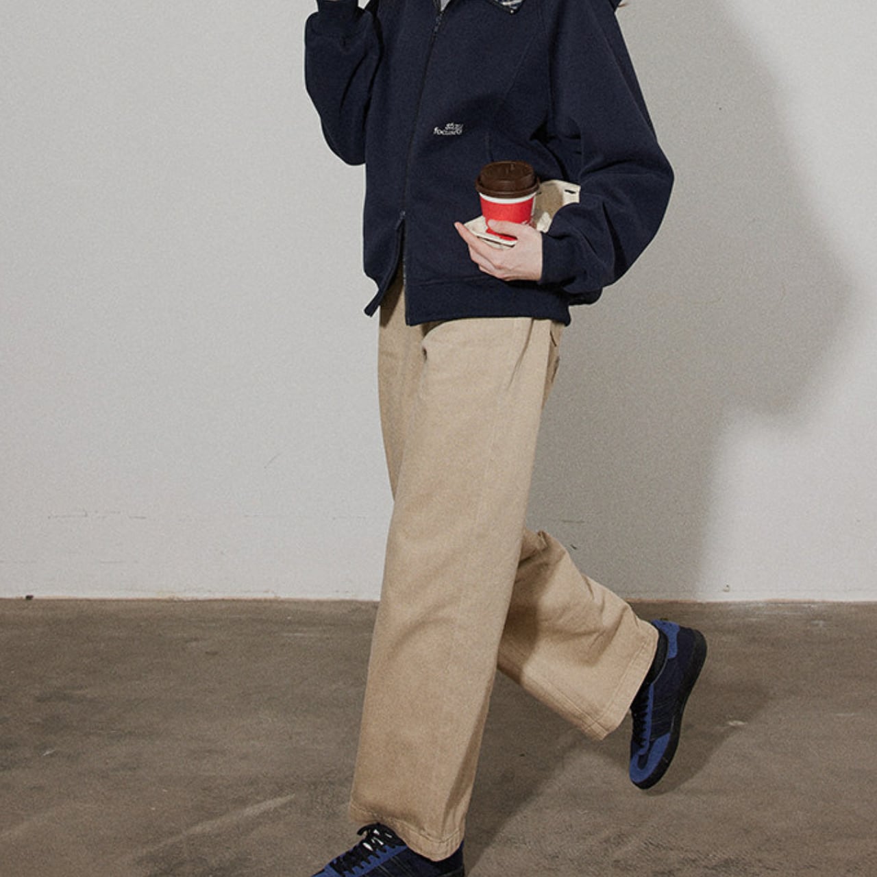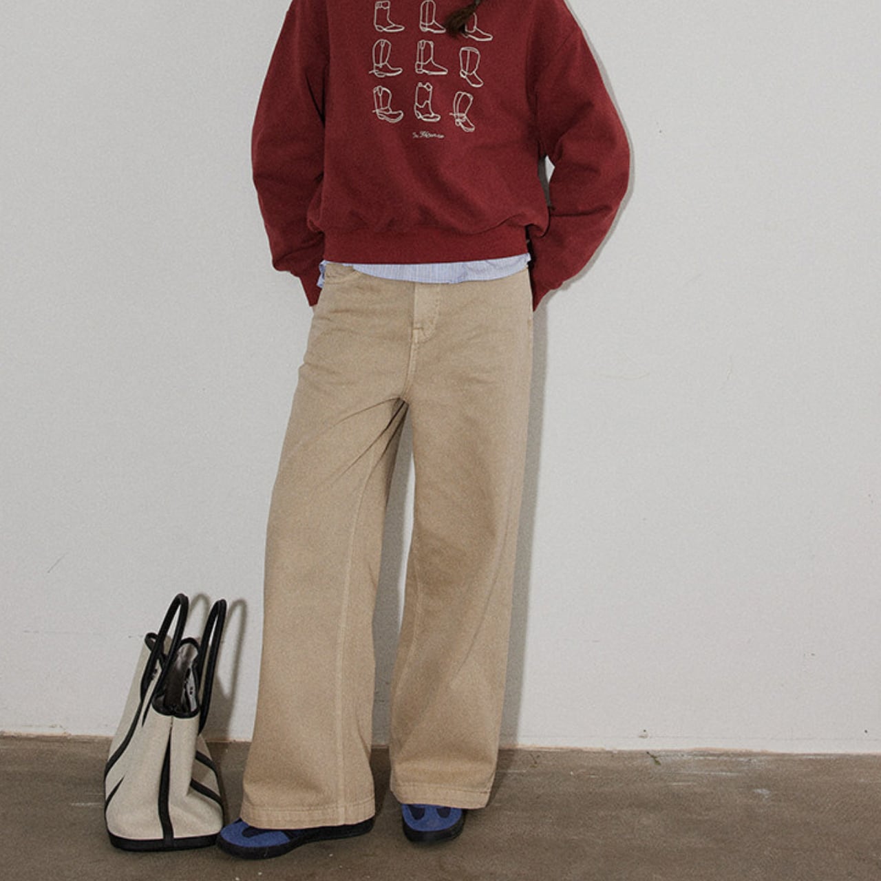ストンと落ちるストレートシルエットで、脚のラインをきれいに見せつつ、リラックス感のある穿き心地に仕上げています。