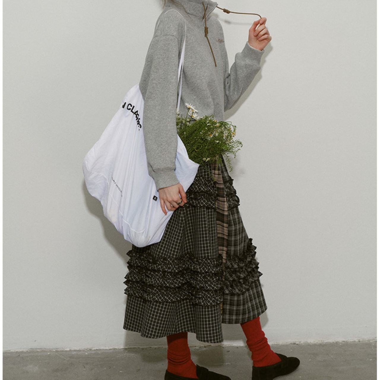 存在感がありながら落ち着いた配色で、シンプルなトップス合わせでもコーデが完成。