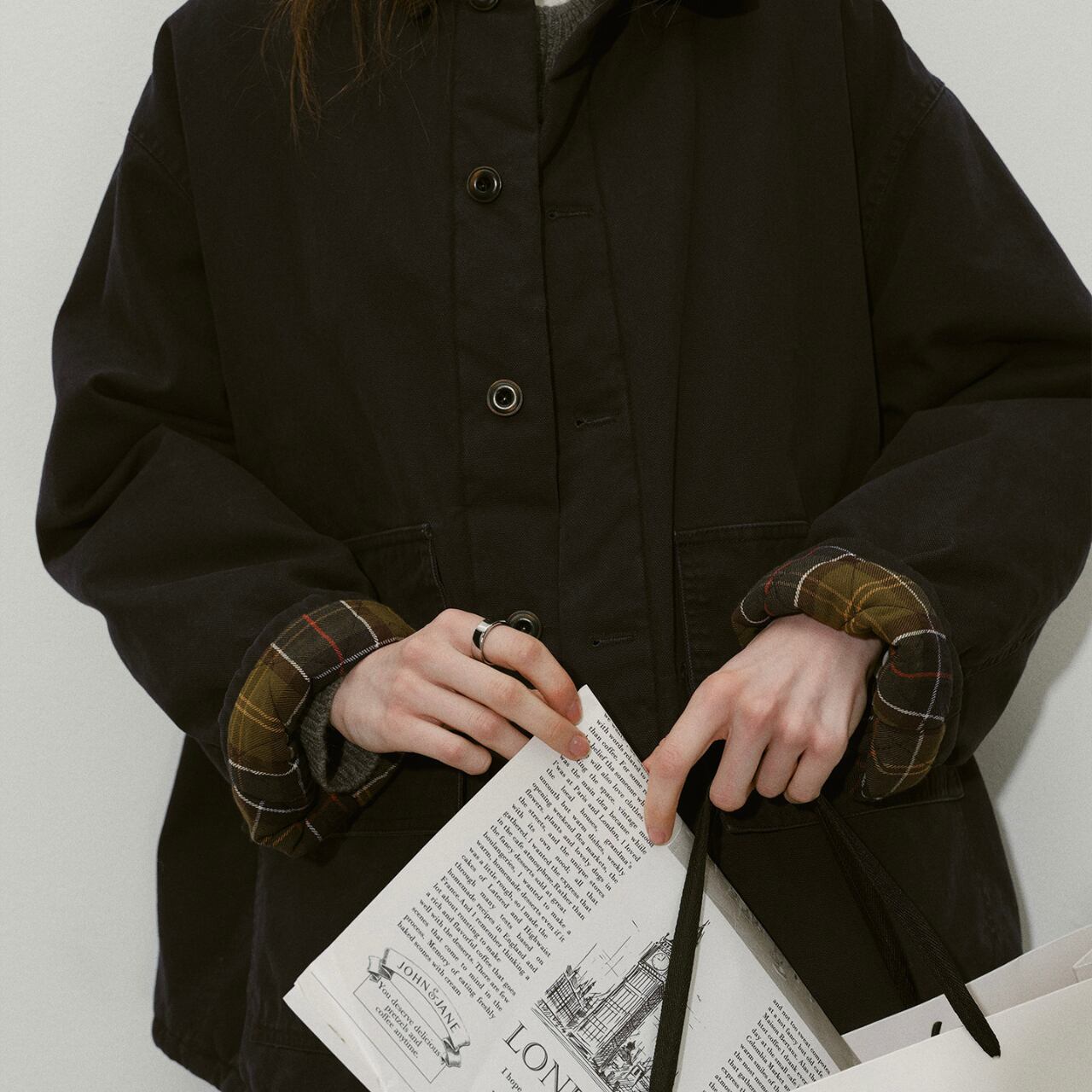 袖口を折り返すとチェック柄が見えるデザインで、さりげない遊び心をプラスしてくれます。