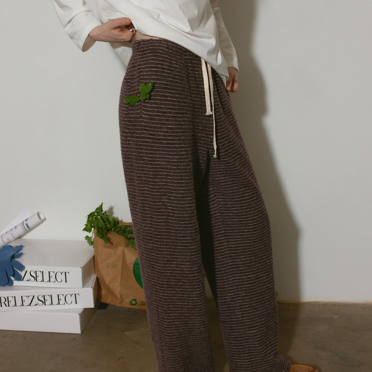 リラックス感漂う、フルレングスのワイドストレートパンツ。