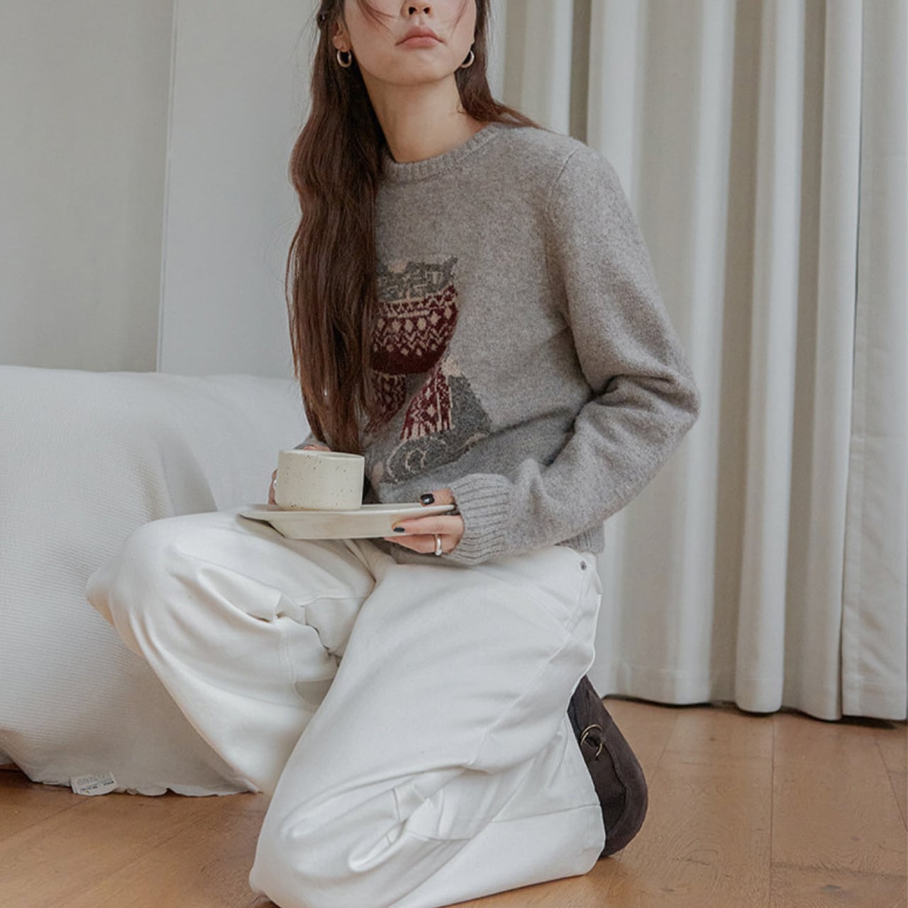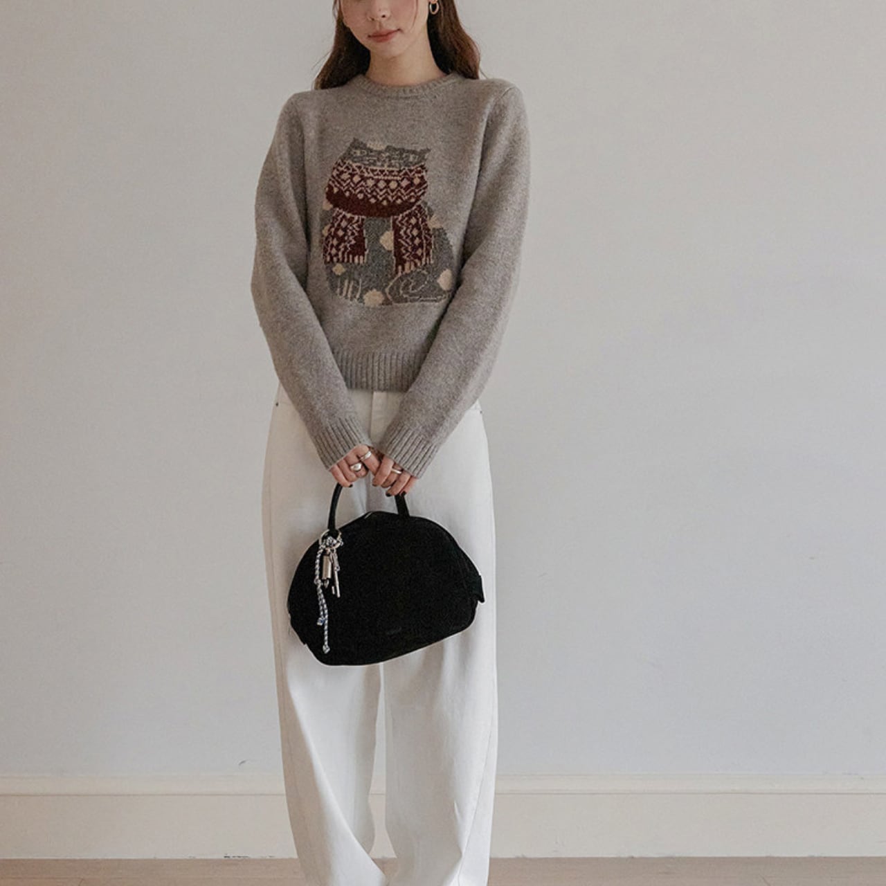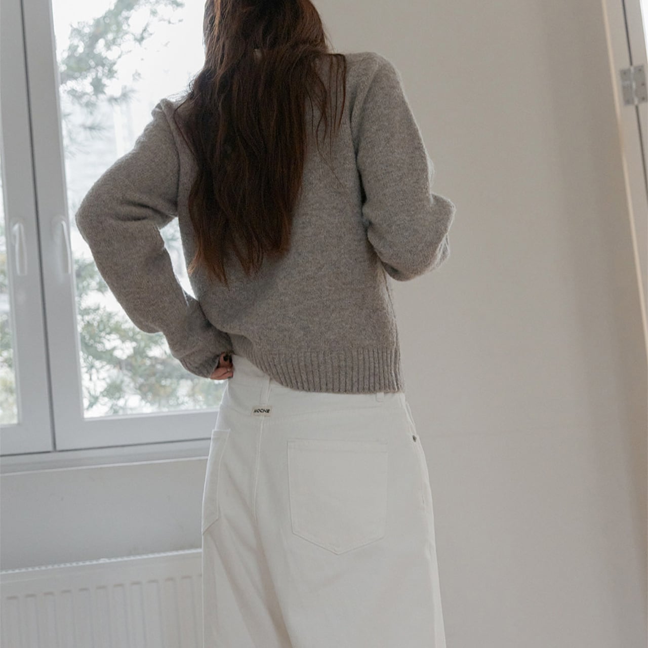 カジュアルなパンツスタイルから、スカートまで、幅広いスタイルに合わせやすい一枚です。