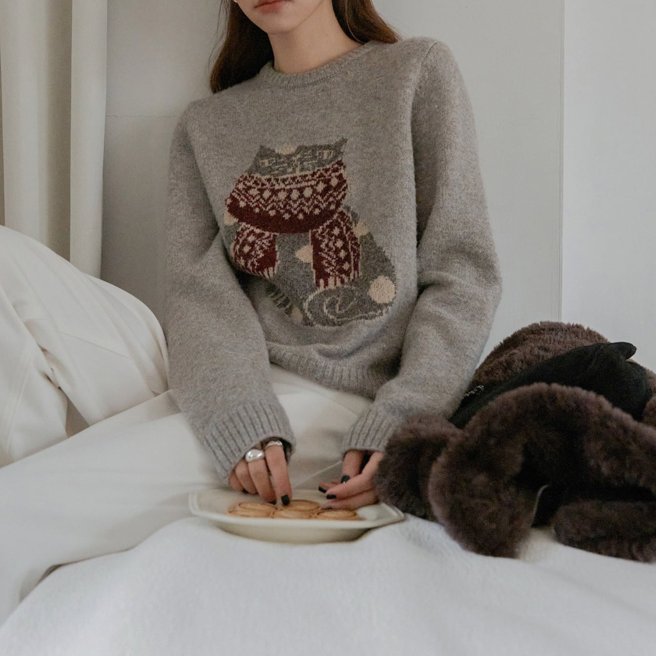 長袖デザインで、これからの季節に活躍するニット。