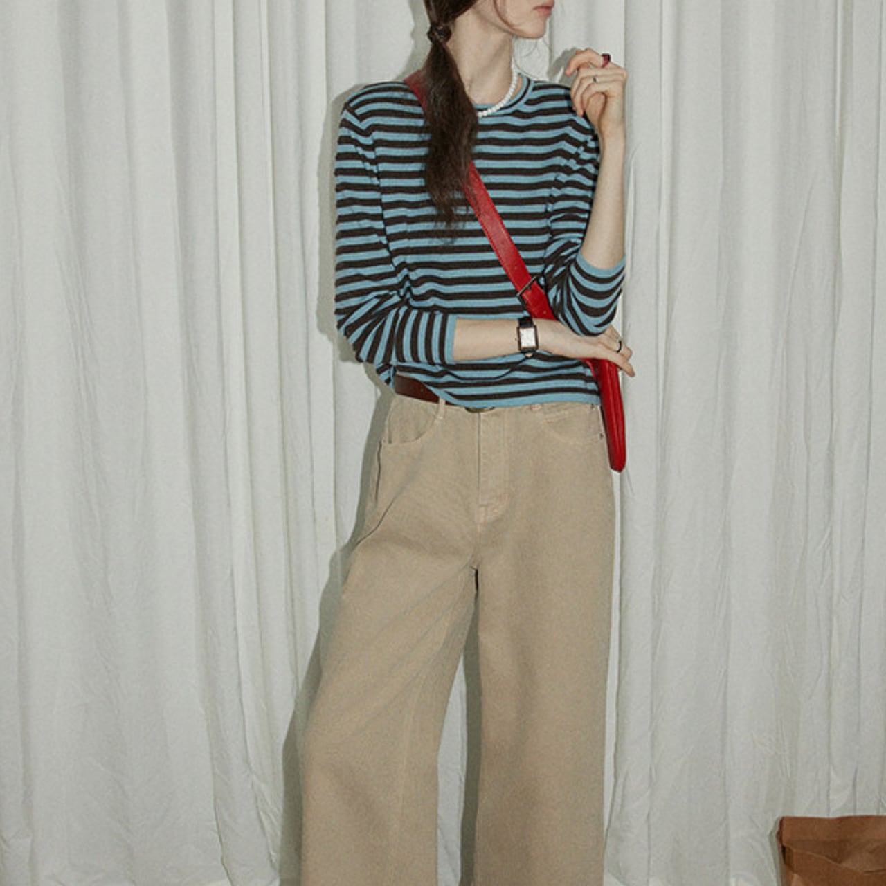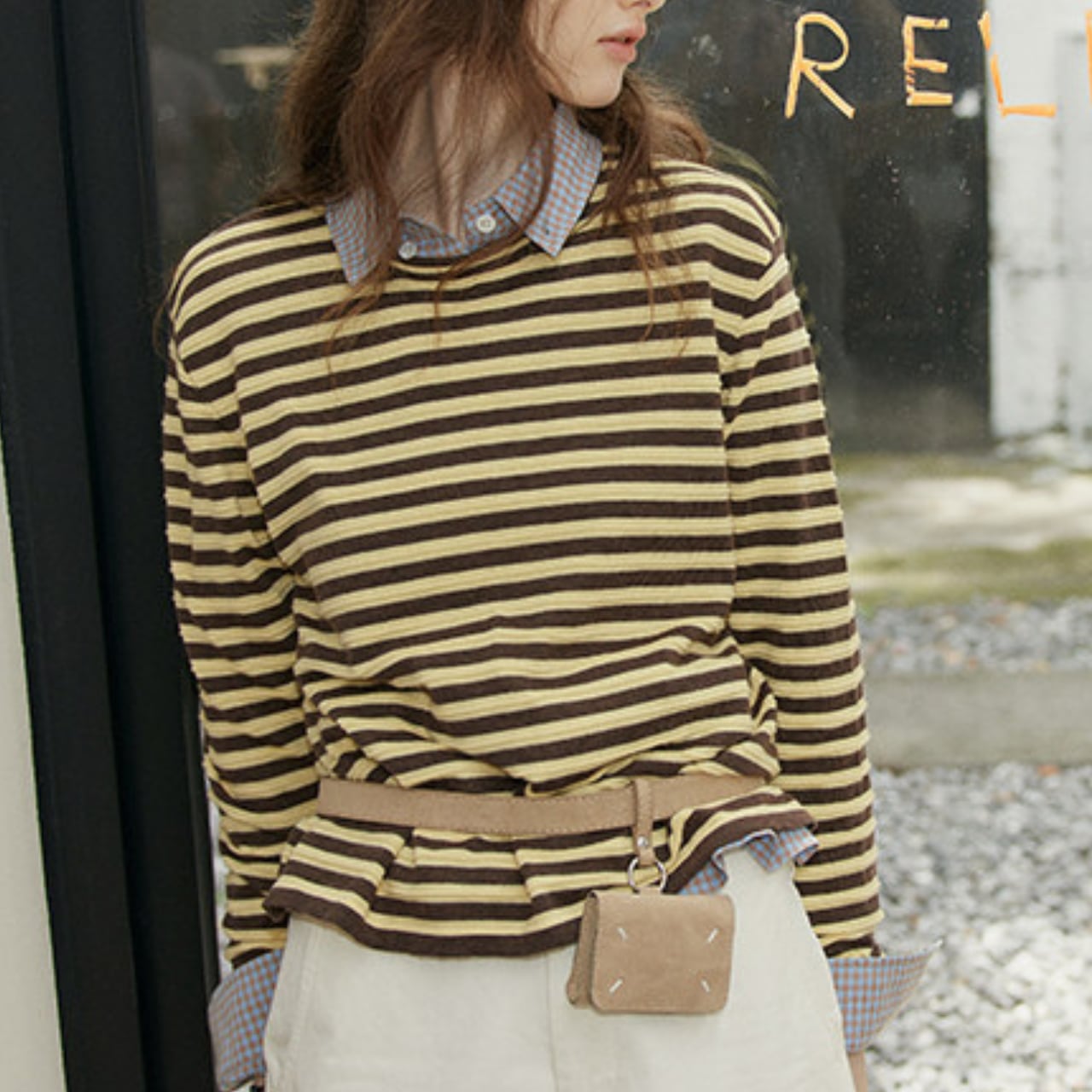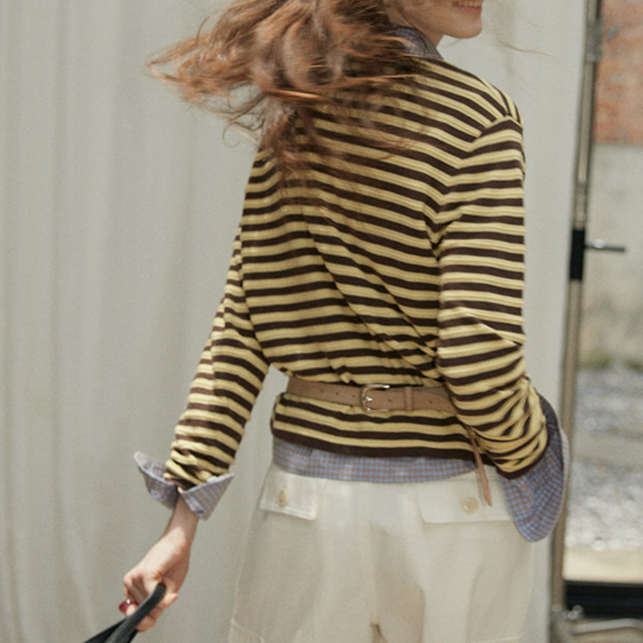 カジュアルな着こなしにぴったりのボーダー柄長袖カットソー。