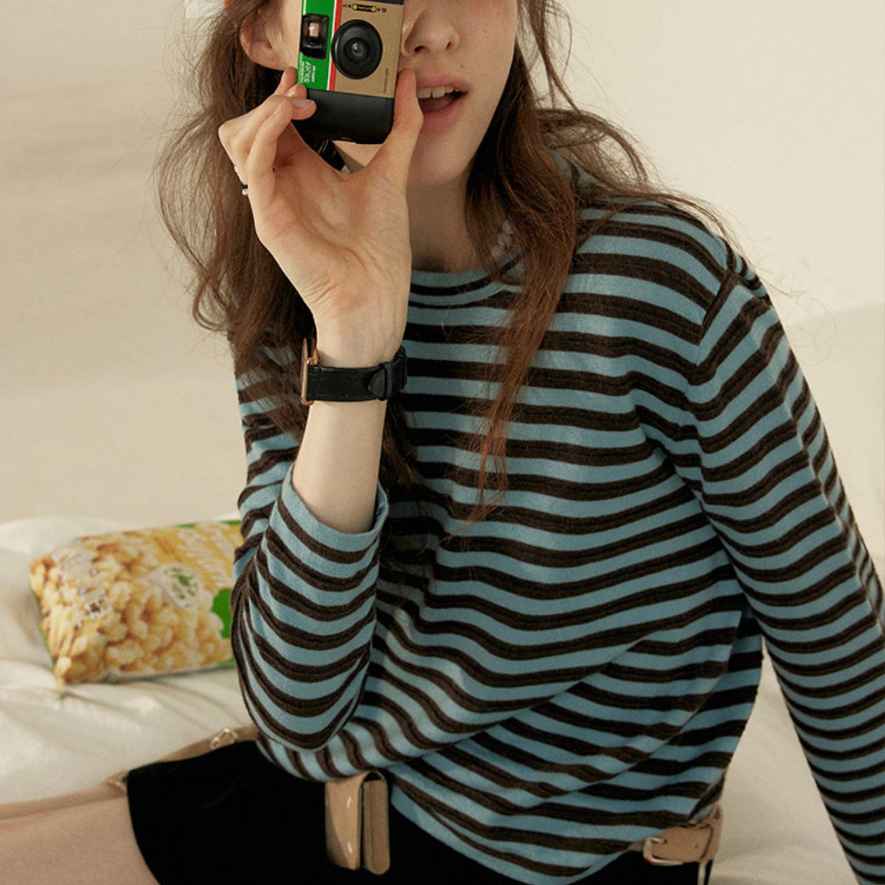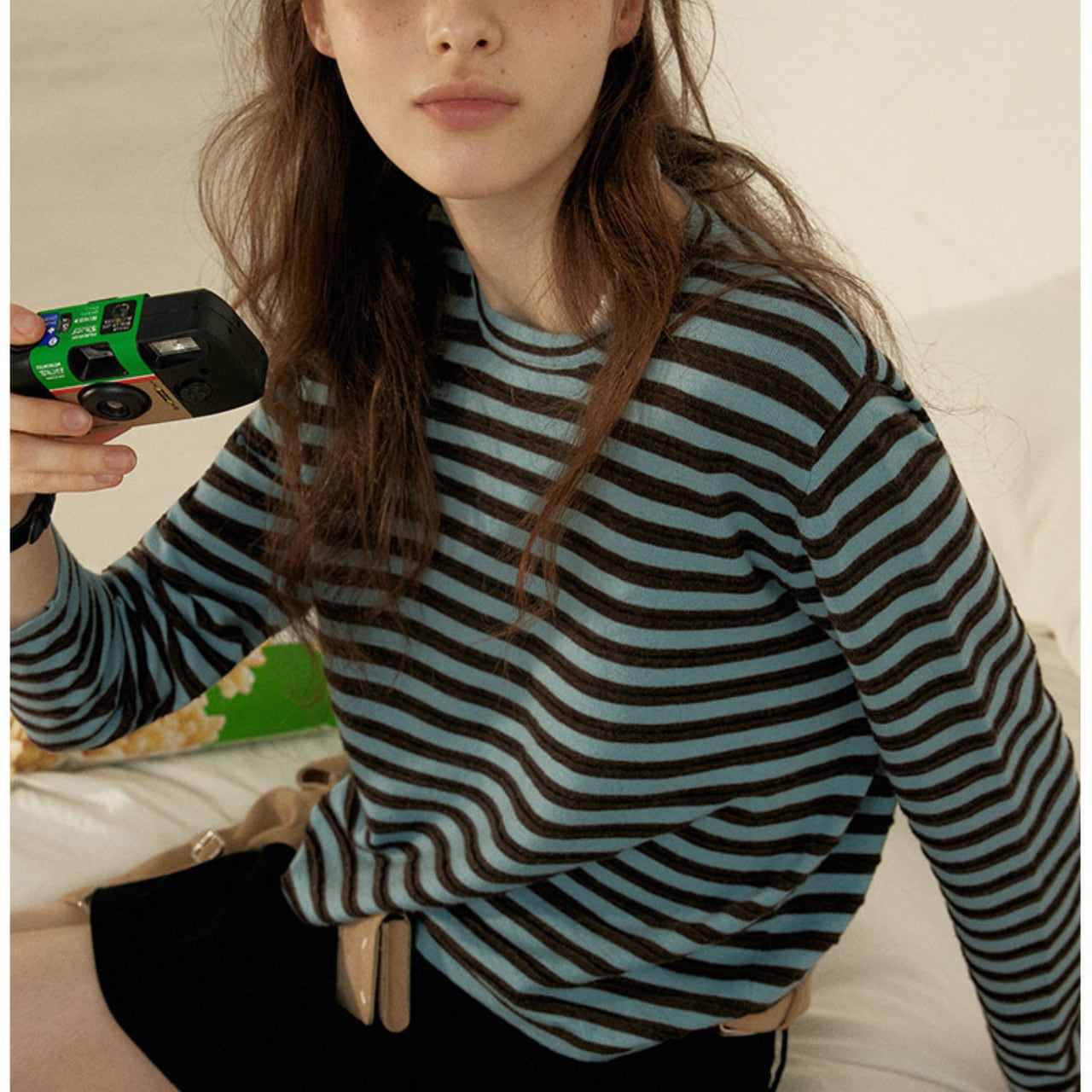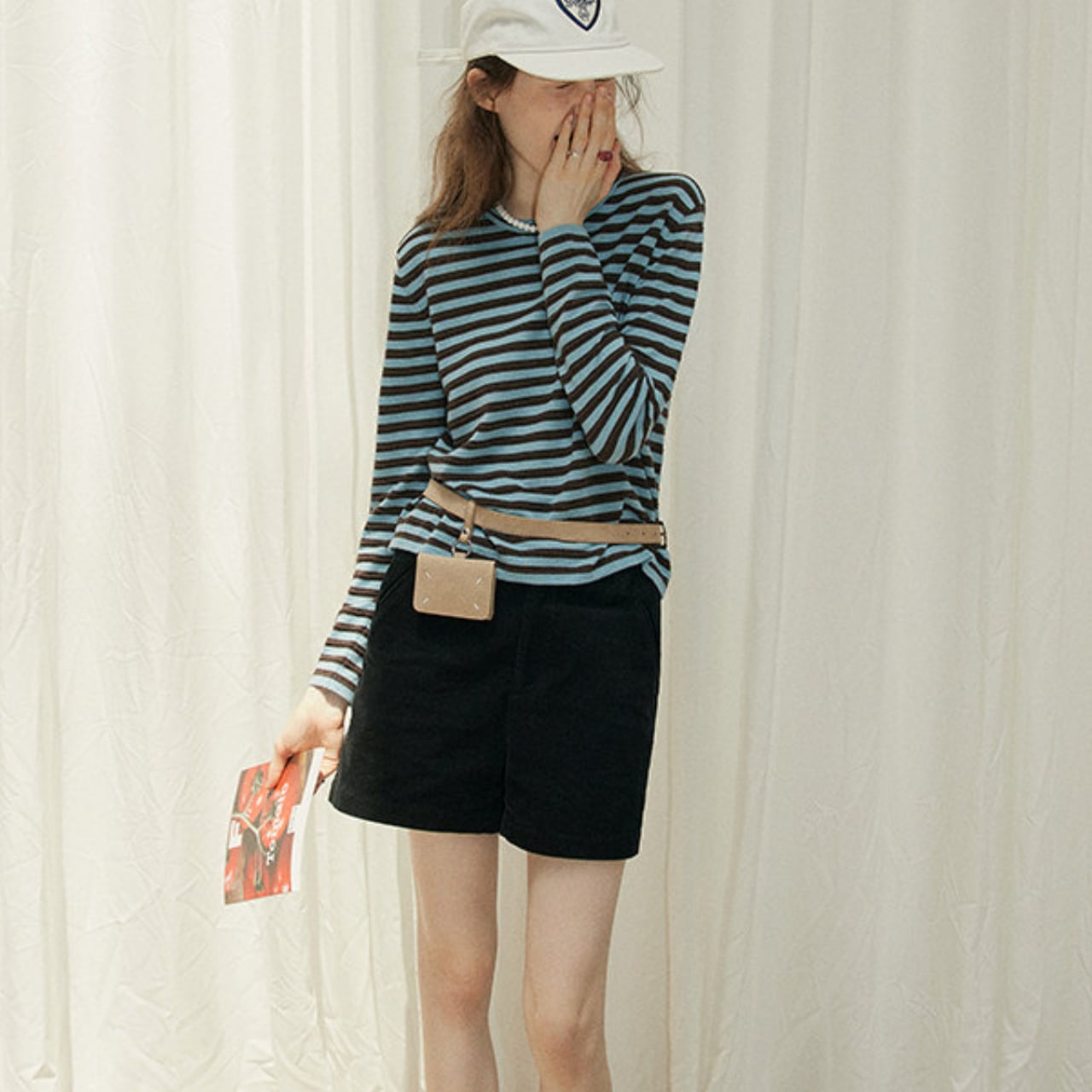 カジュアルな着こなしにぴったりのボーダー柄長袖カットソー。