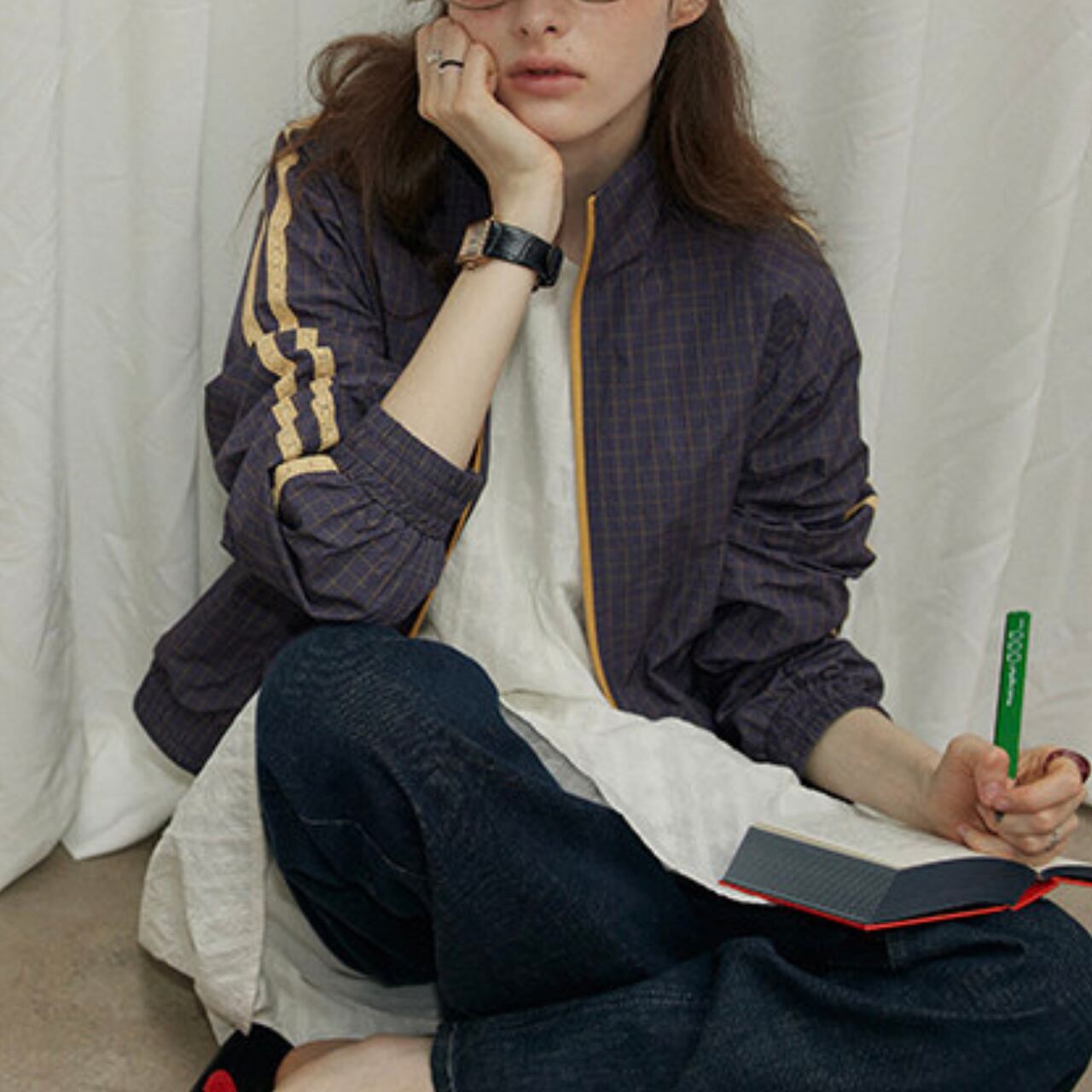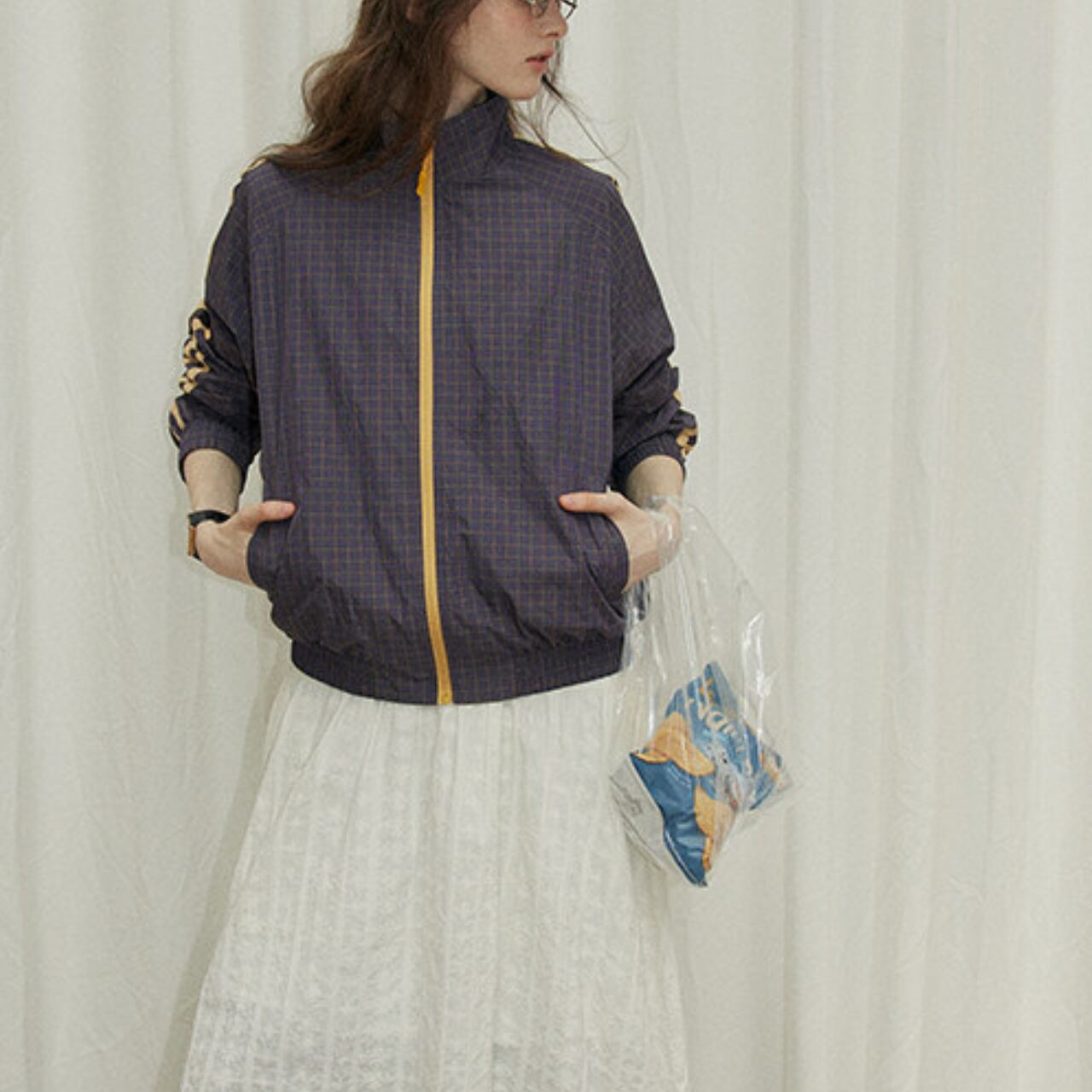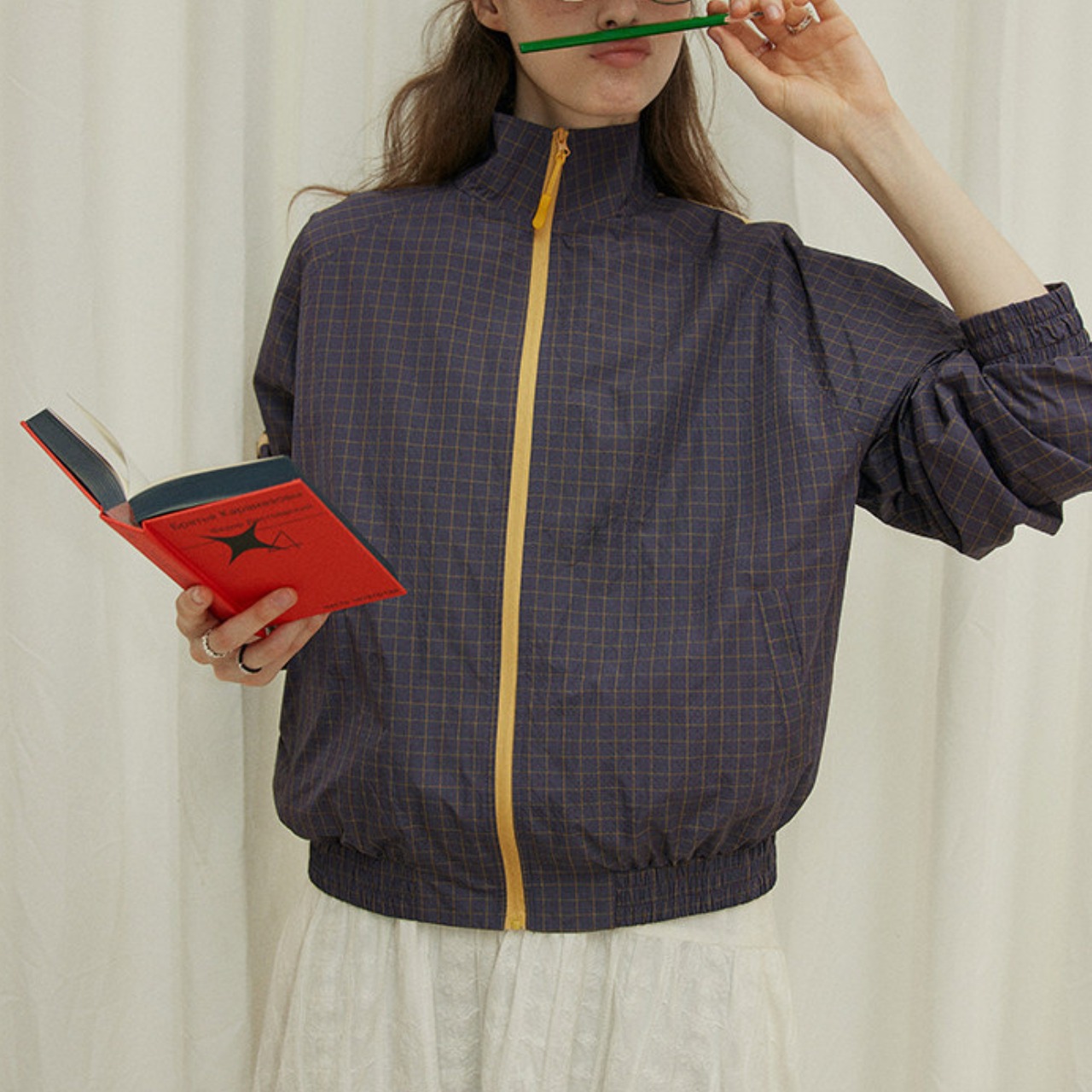 カジュアルに着こなせる、チェック柄のジップアップブルゾン。