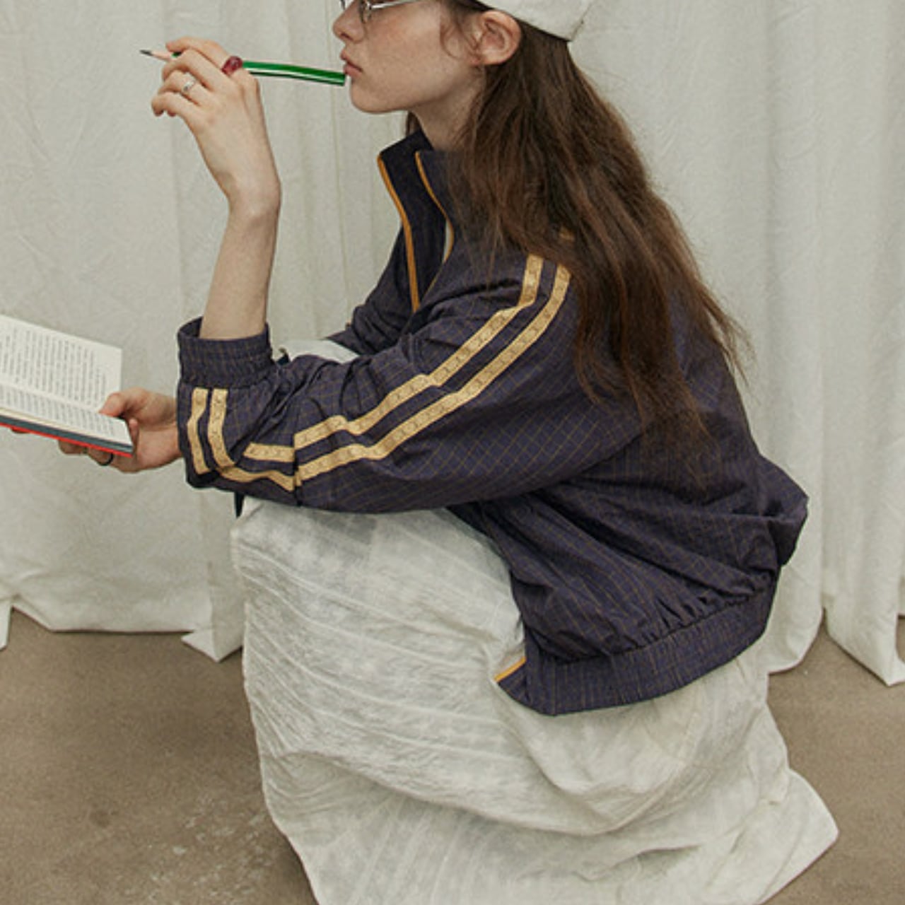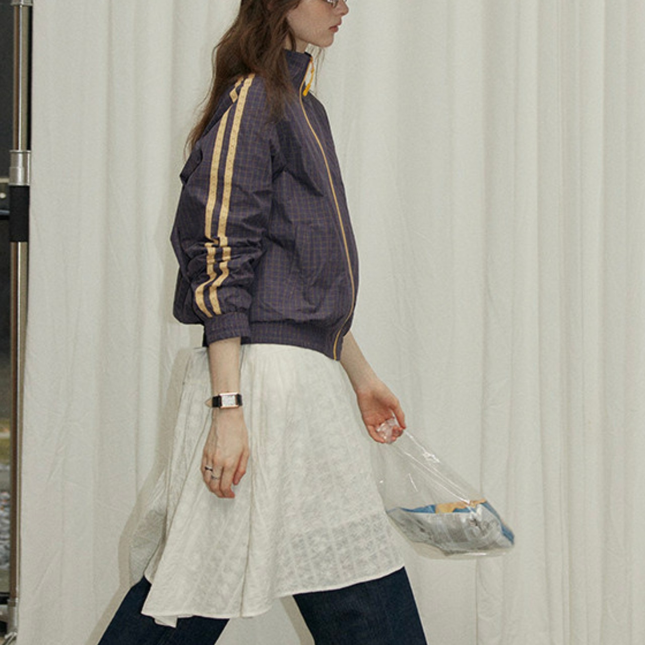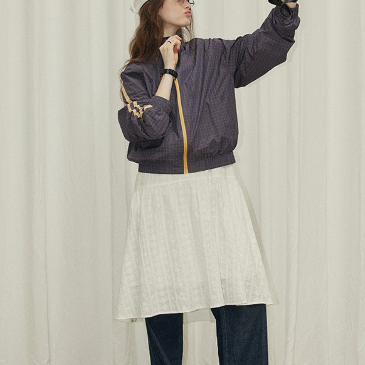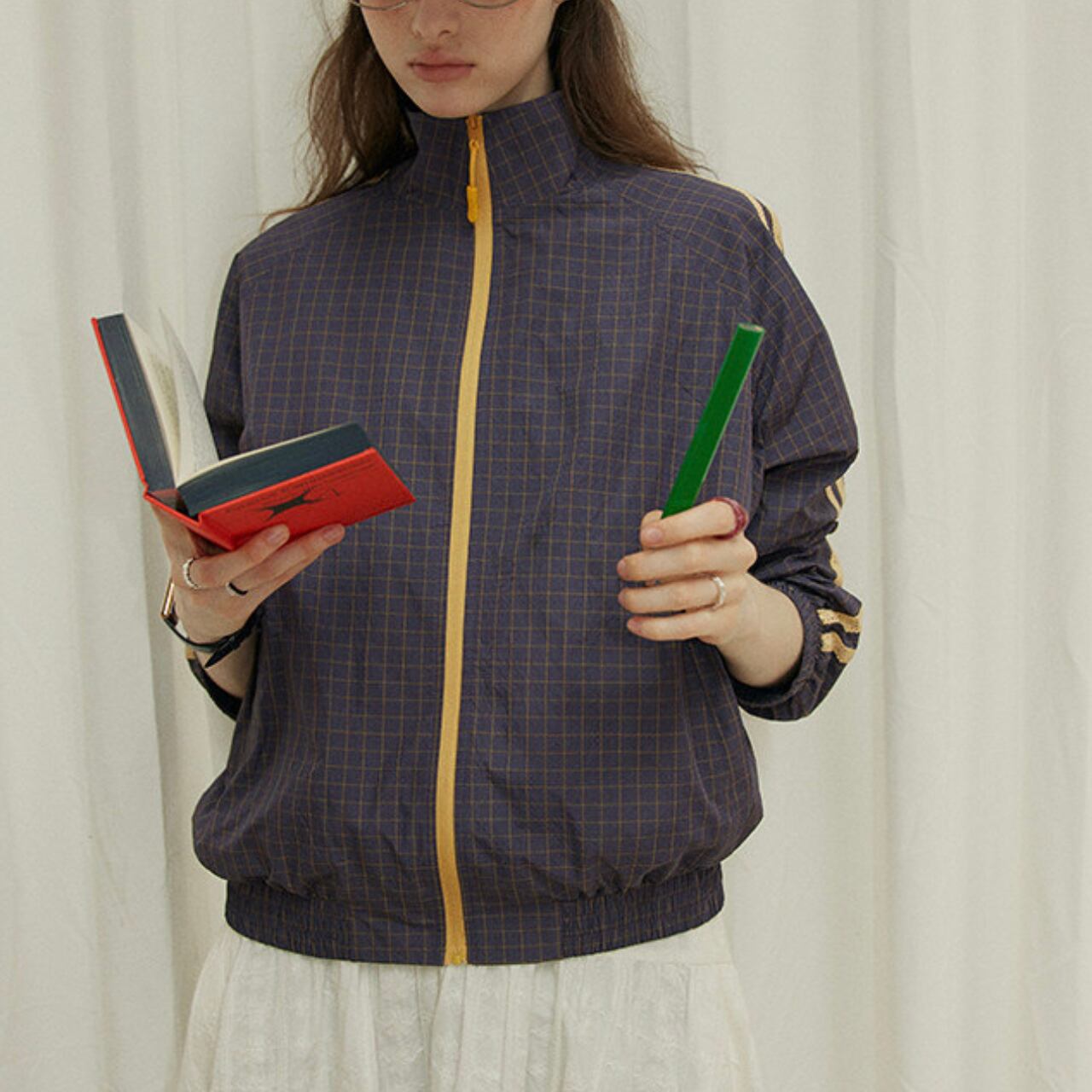 カジュアルに着こなせる、チェック柄のジップアップブルゾン。