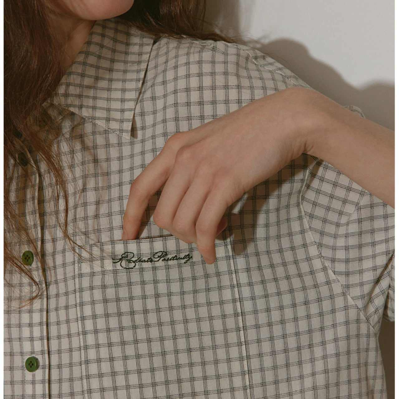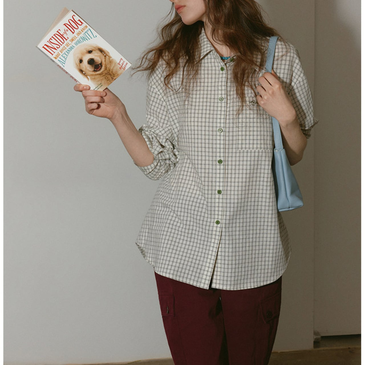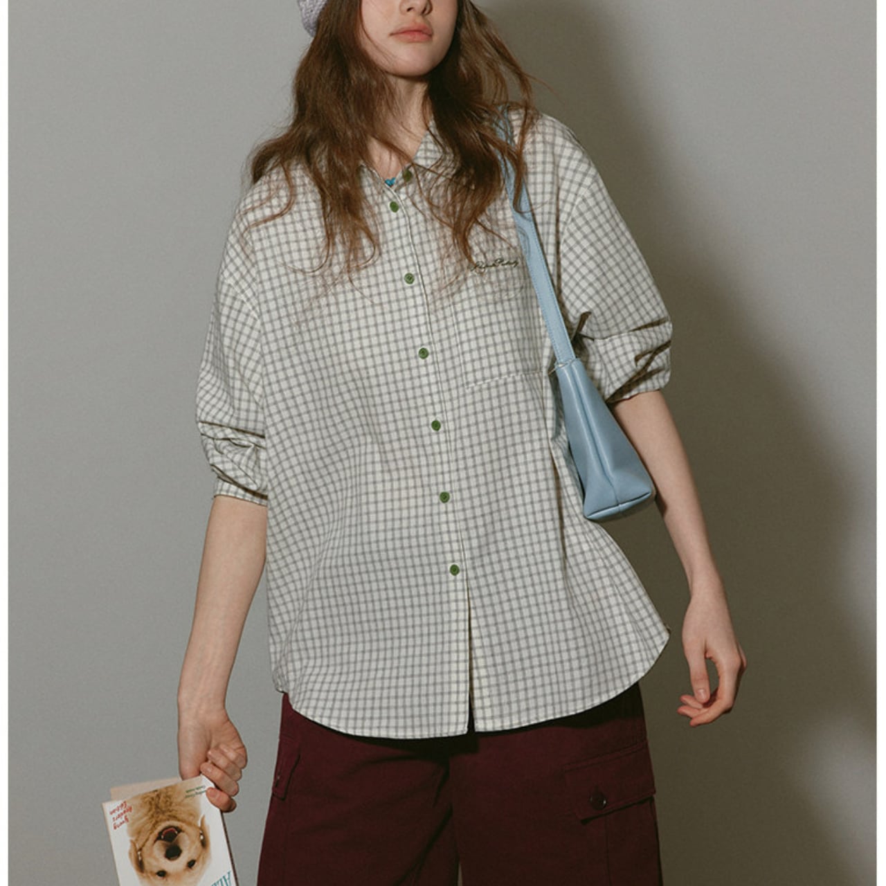 チェック柄がコーディネートにアクセントを加え、カジュアルながらも洗練された印象を与えます。