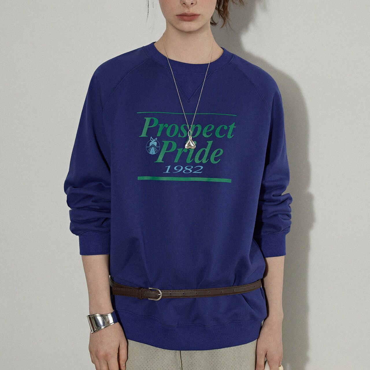 ロゴが目を引く、長袖クルーネックスウェット。