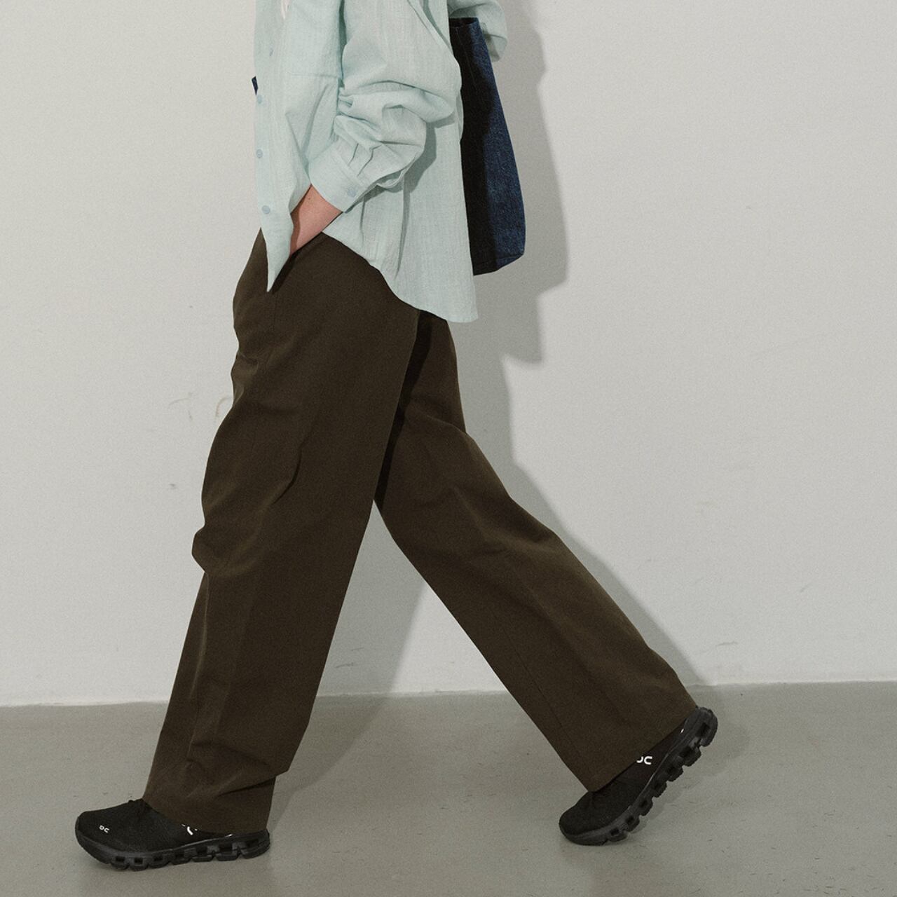 リラックス感と洗練されたスタイルを両立するワイドレッグパンツ。