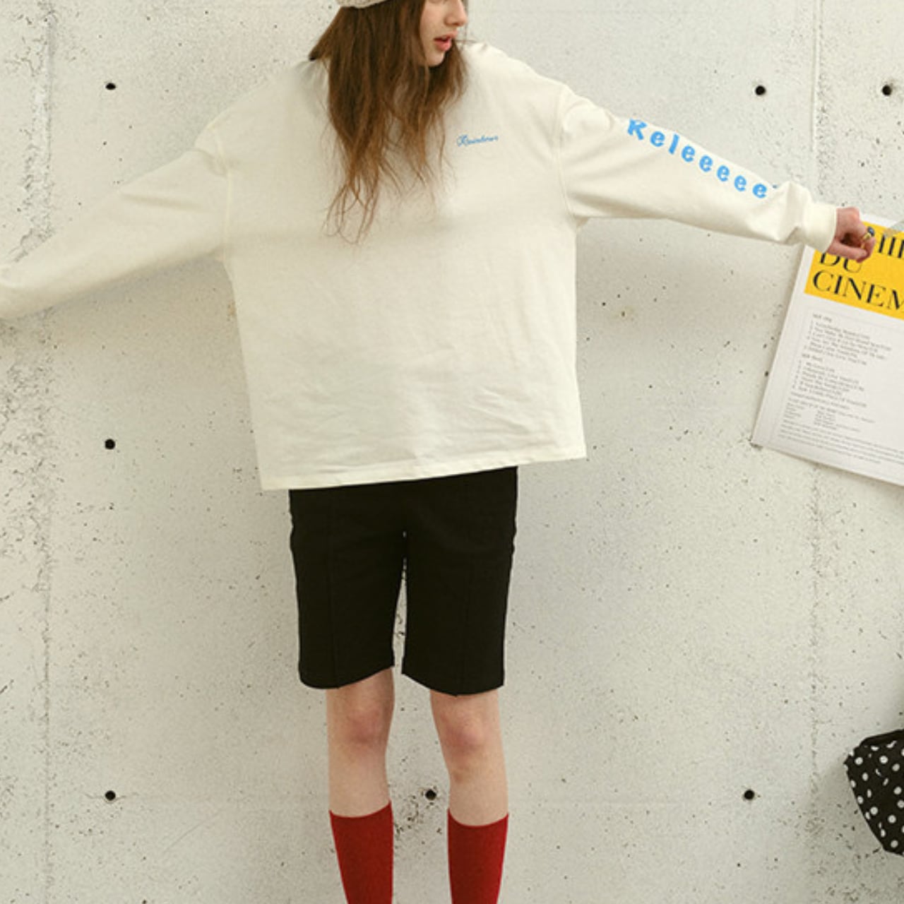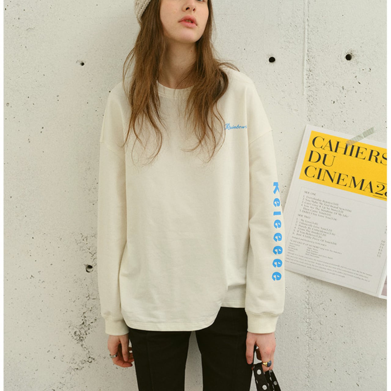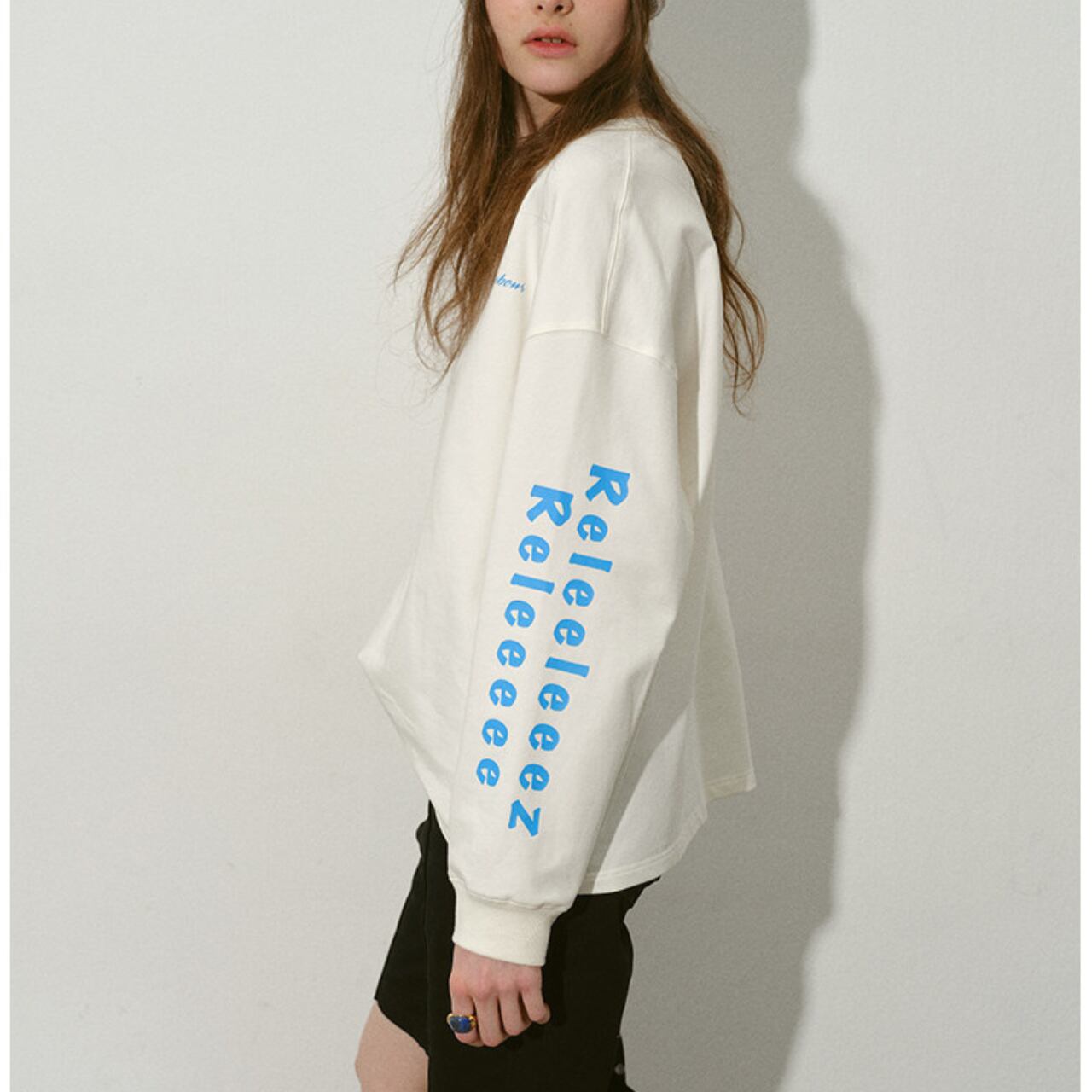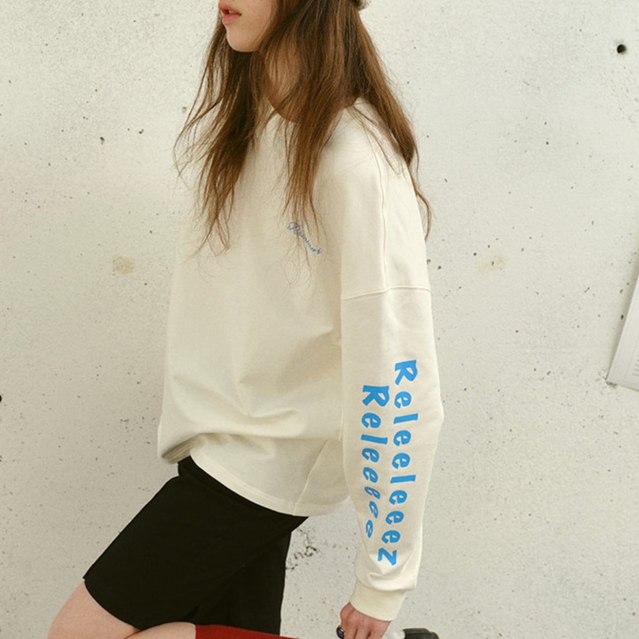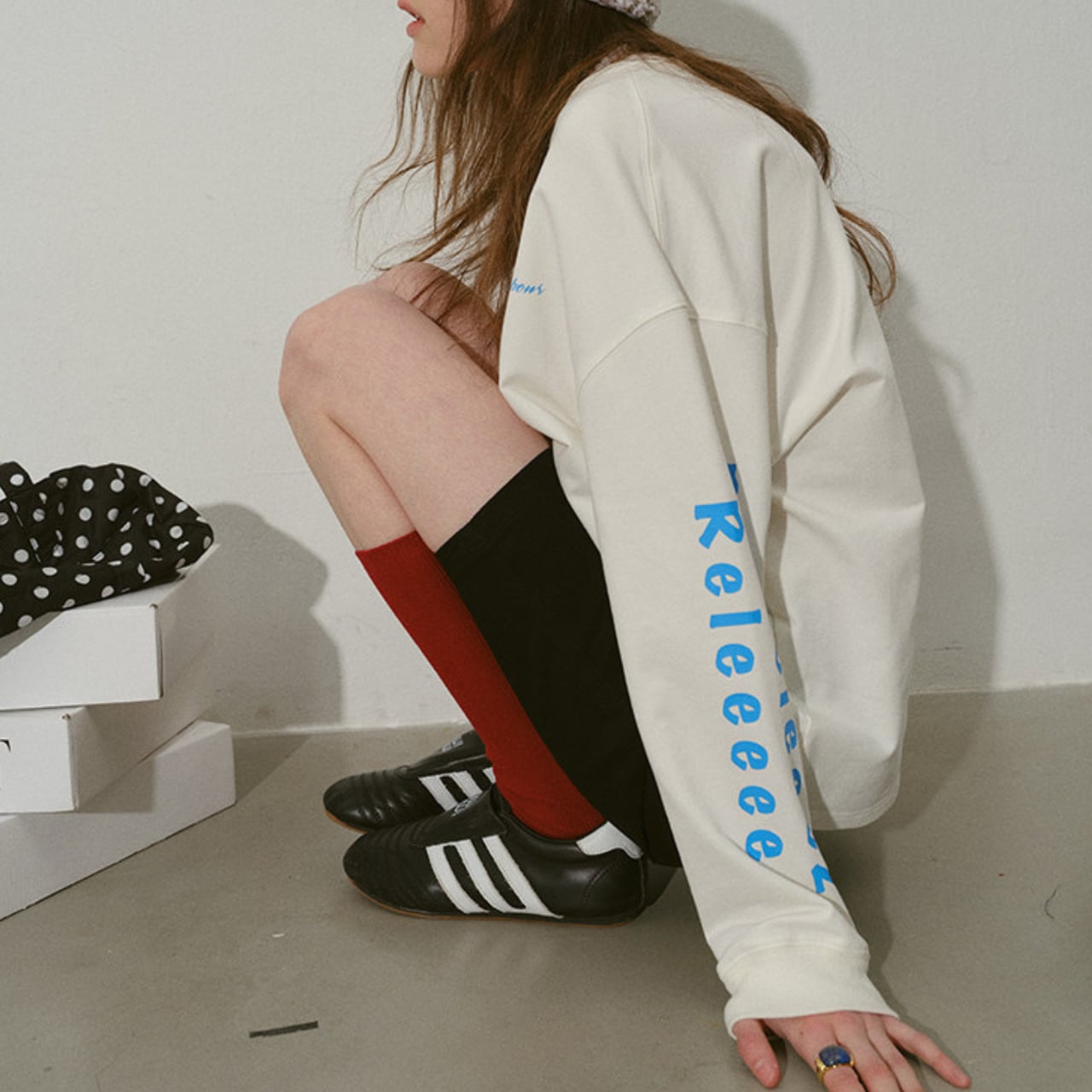 袖のロゴプリントが目を引くヒップ丈のスウェット