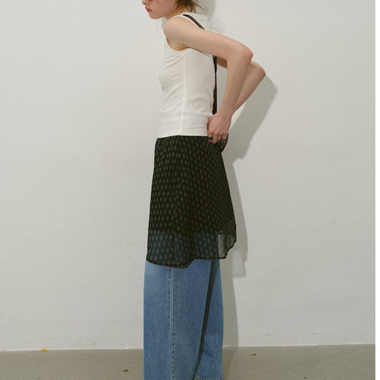 広がりすぎないAラインシルエットは、スタイルアップ効果も期待できます。
