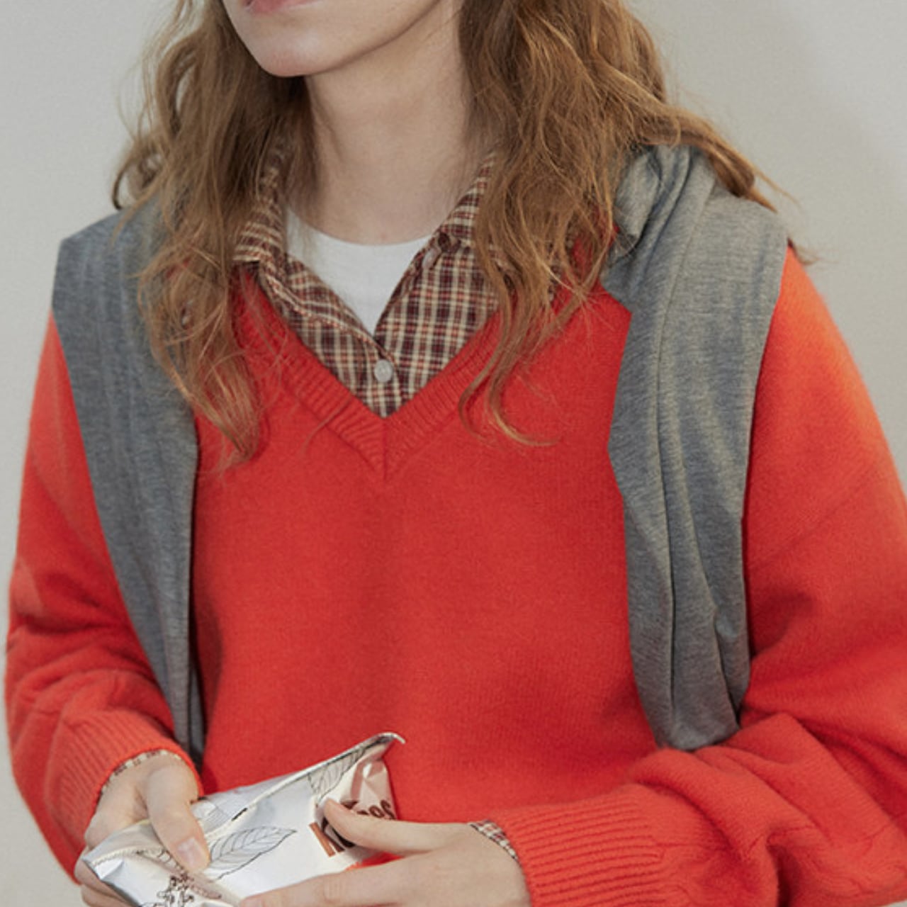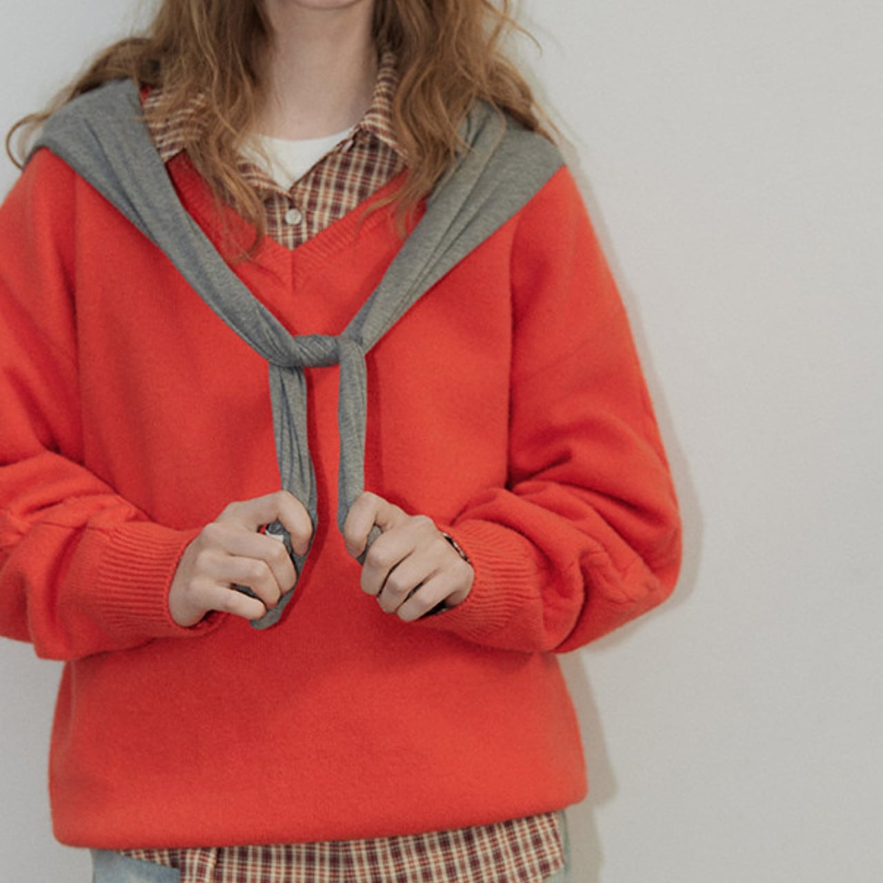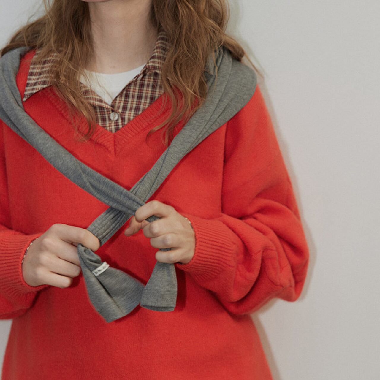 Vネックが首元をすっきりと見せてくれるニット。