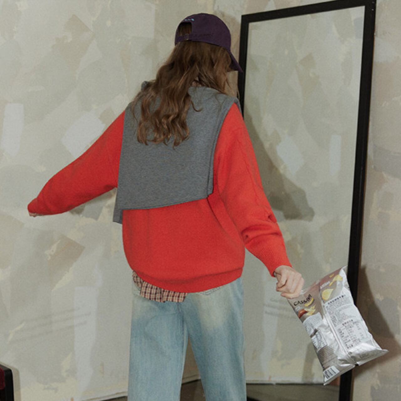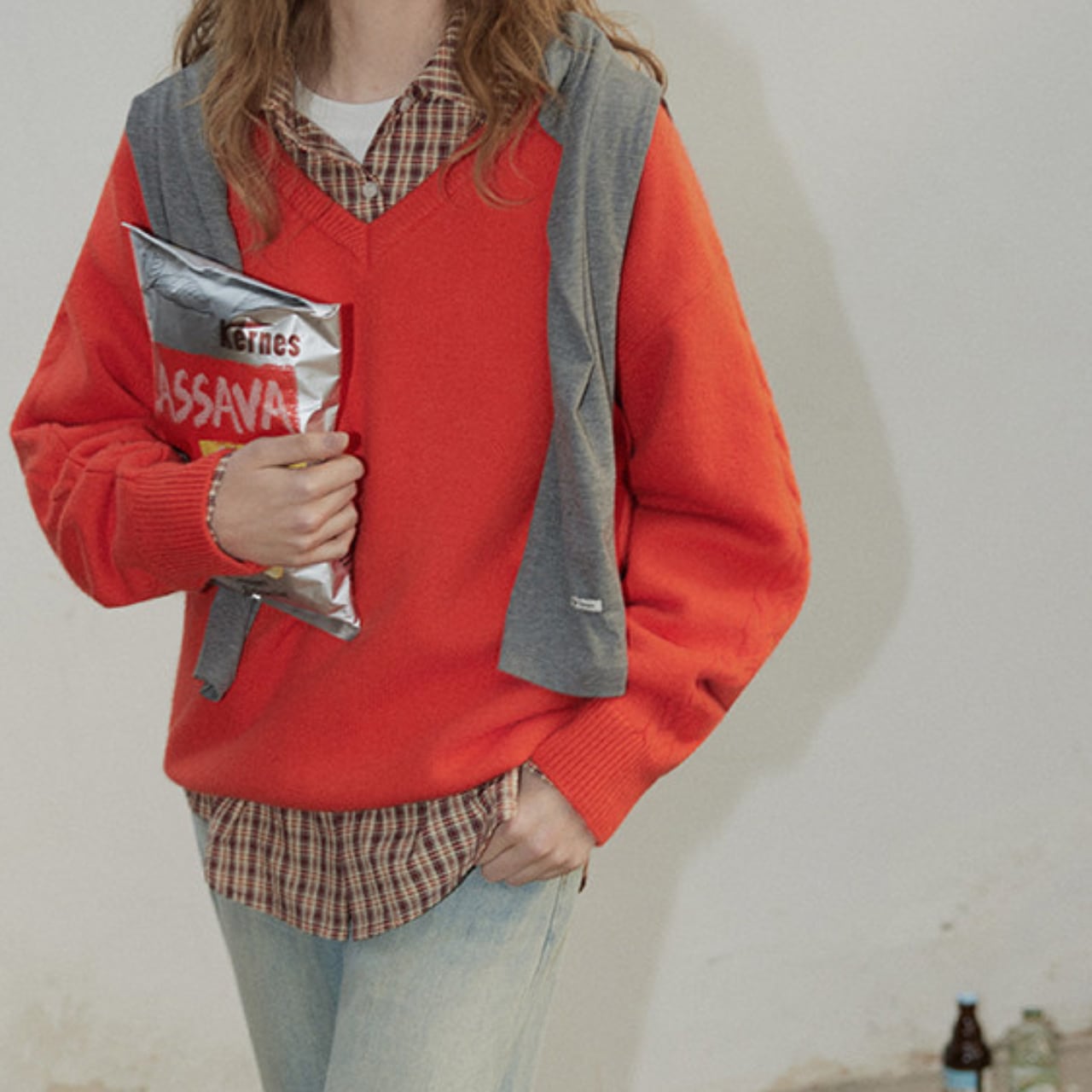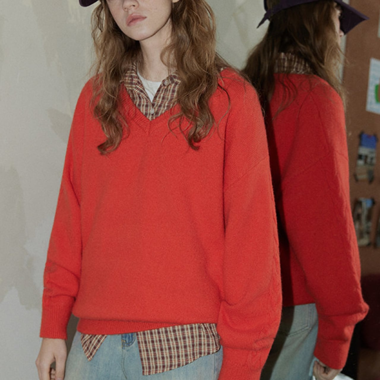 存在感のあるカラーなので一枚で着用はもちろん、シャツやカットソーとのレイヤードスタイルも作りやすい使えるアイテムです◎